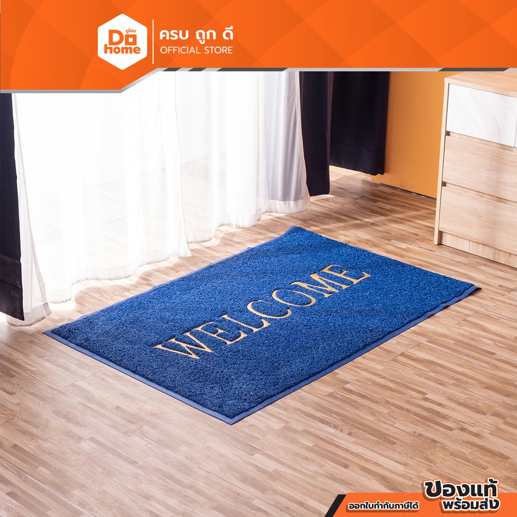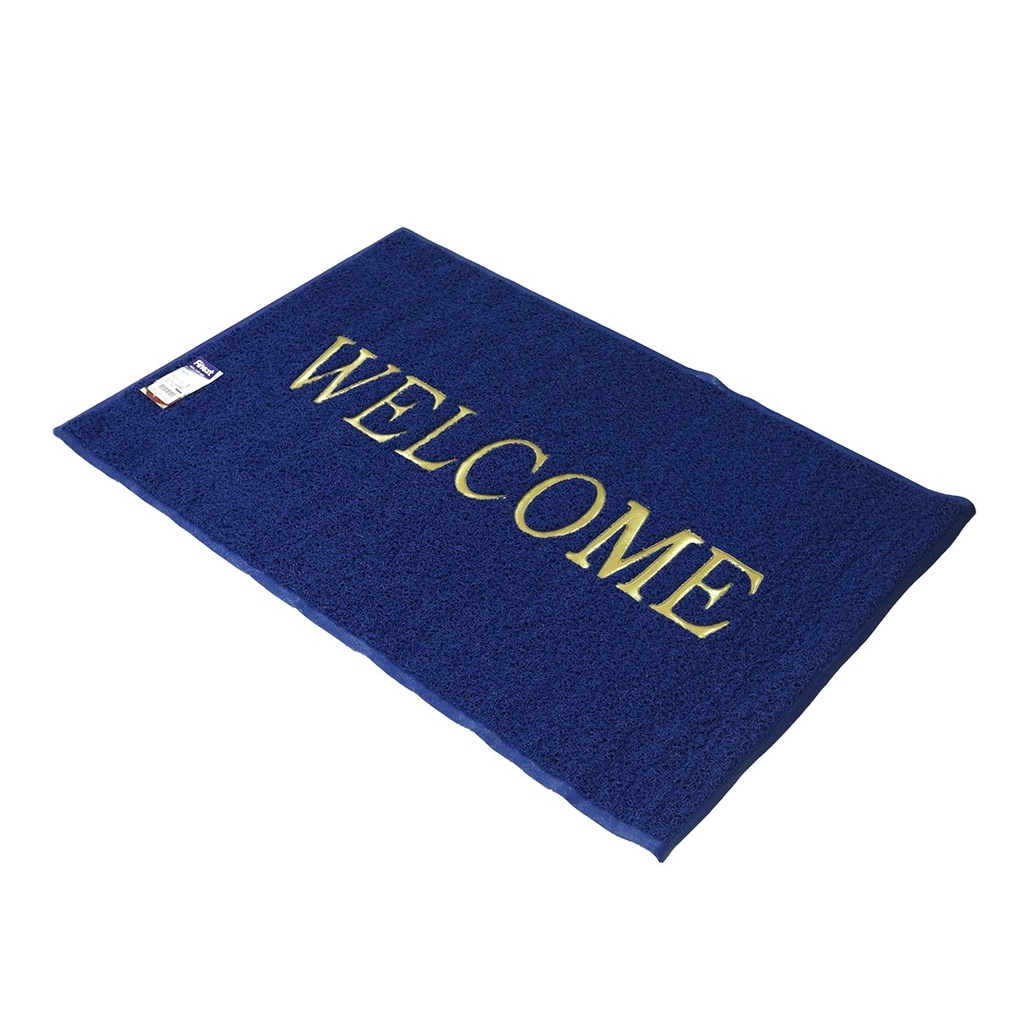 FINEXT พรมเช็ดเท้า ใยยาง ขนาด 80x120 ซม. WELCOME สีน้ำเงิน |PUN|