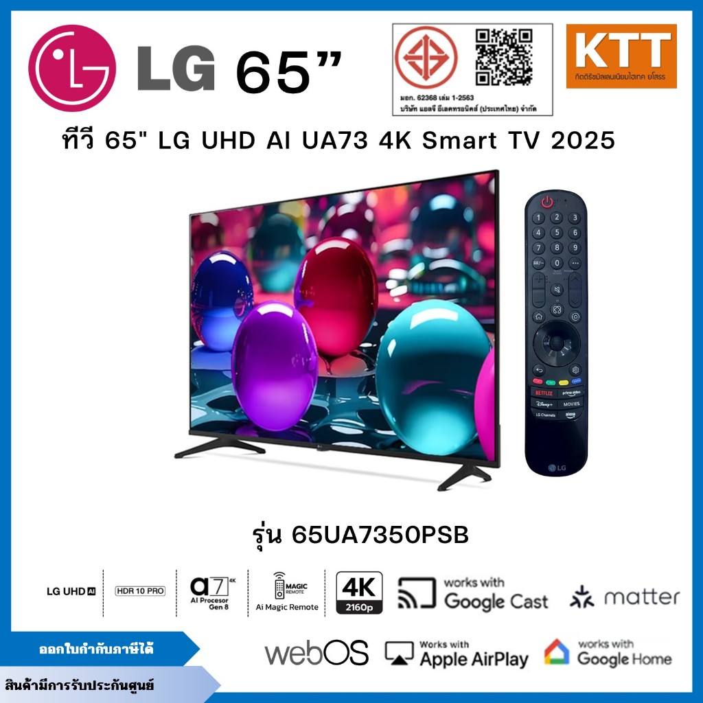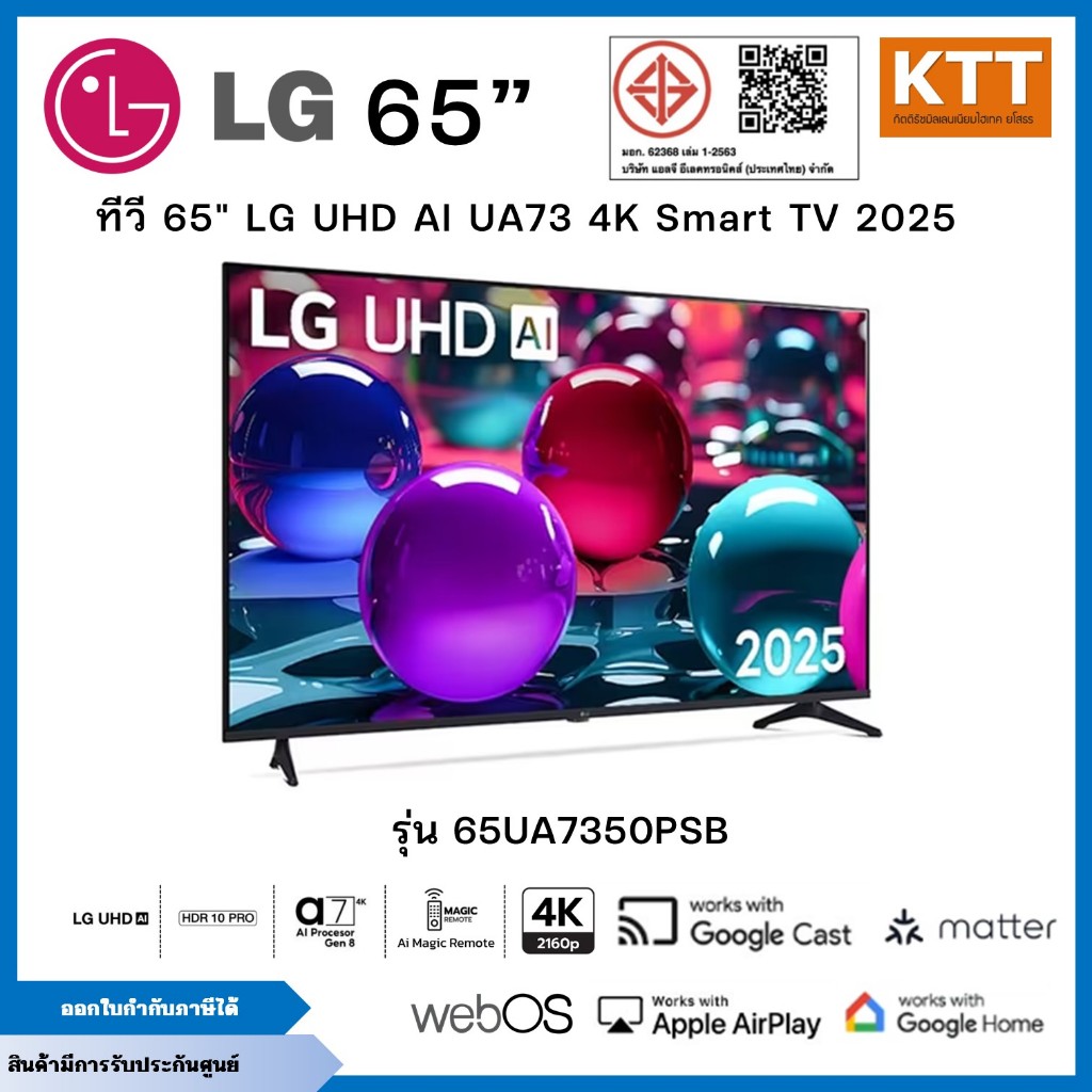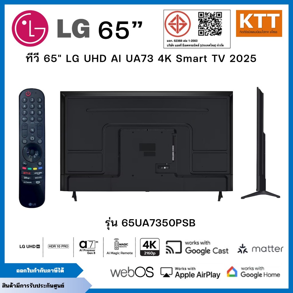 LG TV ทีวี AI UA73 สมาร์ททีวี 65 นิ้ว 4K UHD LED รุ่น 65UA7350PSB.ATMQ ปี 2025