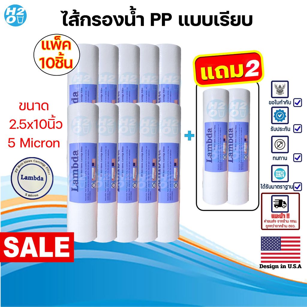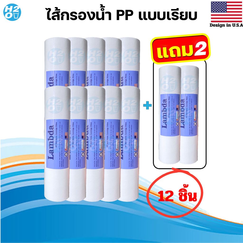 Lambda 12ชิ้น ไส้กรองน้ำ PP 5 ไมครอน ไส้กรองหยาบ ไส้กรองพีพี 10 นิ้ว Sediment (จำนวน 10ฟรี2ชิ้น)