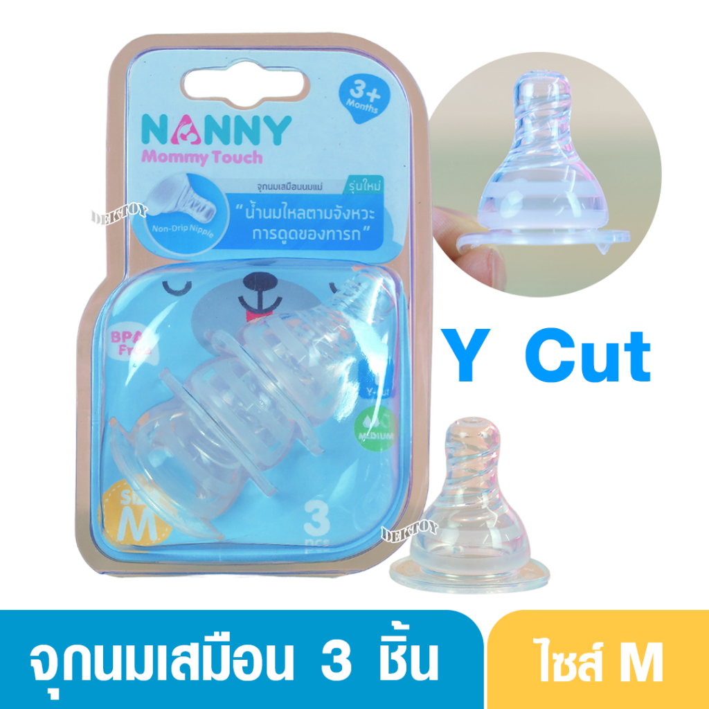 Y cut Nanny จุกนมเสมือนนมมารดา Slim Neck (คอแคบ) ไซส์ M รุ่นใหม่ไหลตามจังหวะการดูด (แพ็ค 3 ชิ้น)