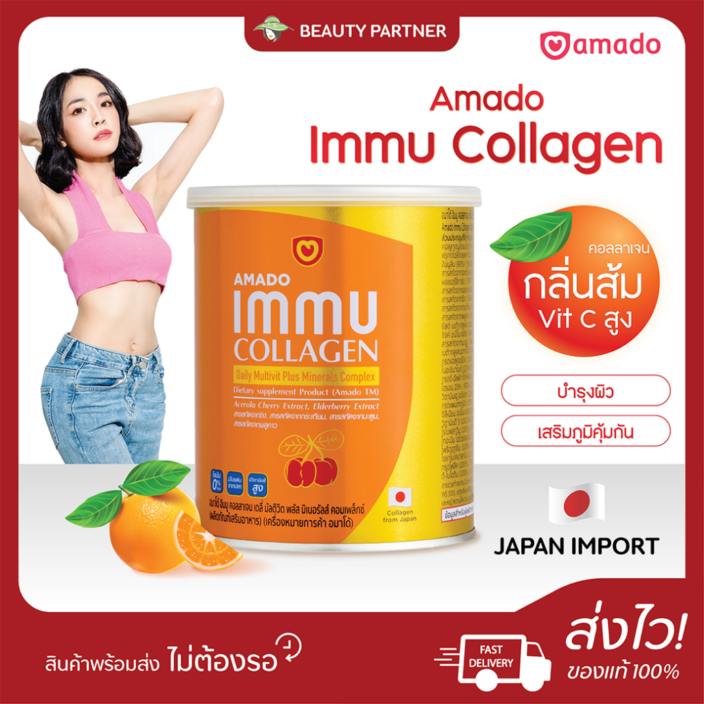 Amado Immu Collagen อมาโด้ อิมมู คอลลาเจน [100 กรัม] [1 กระปุก] Amado Collagen ของแท้ คอลลาเจนดูแลผิว กระดูก และข้อต่อ