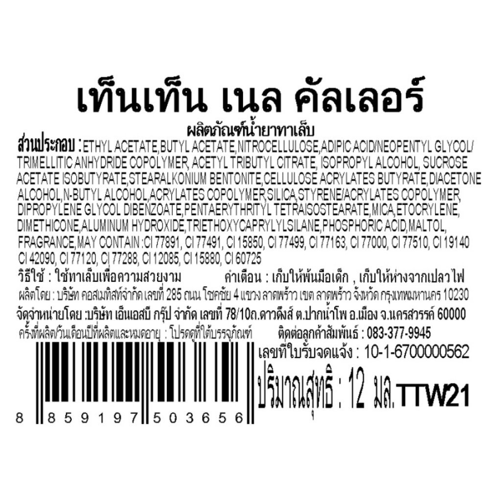 Ten Ten เท็นเท็น น้ำยาทาเล็บ 12มล. #TTW21 สีชมพู