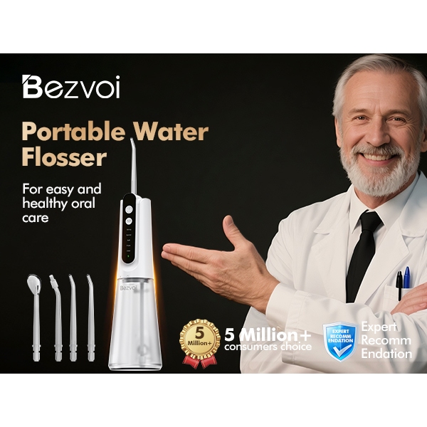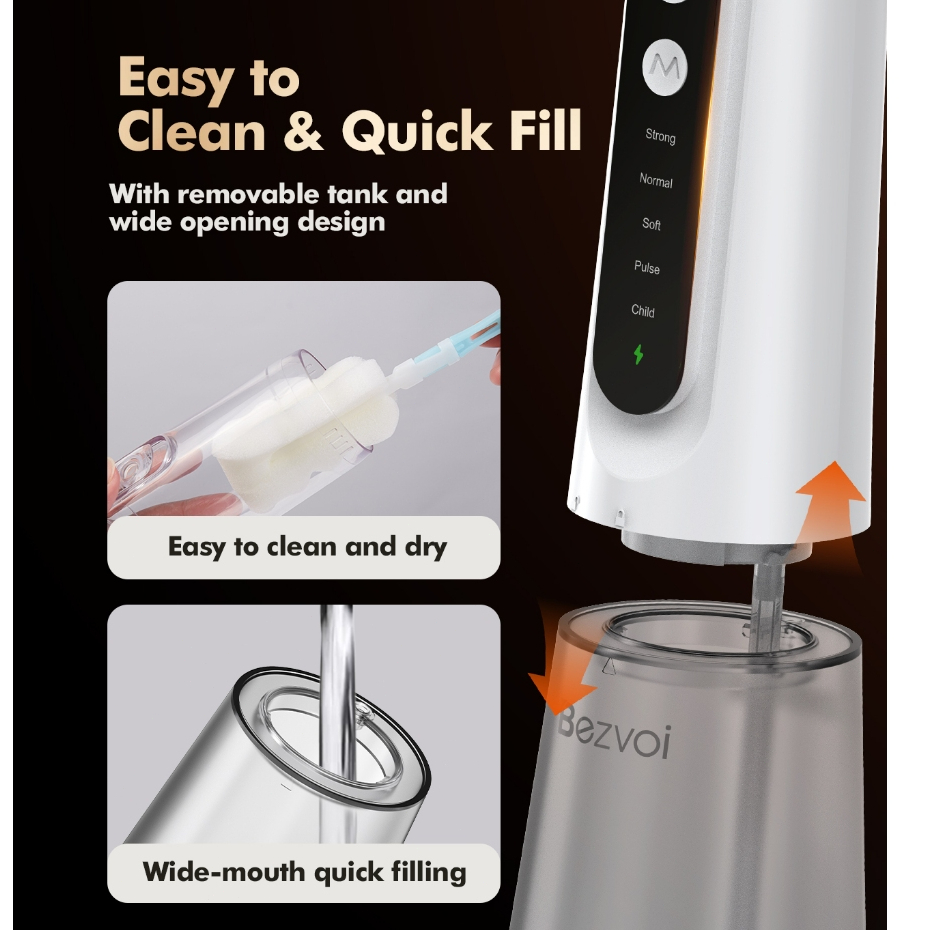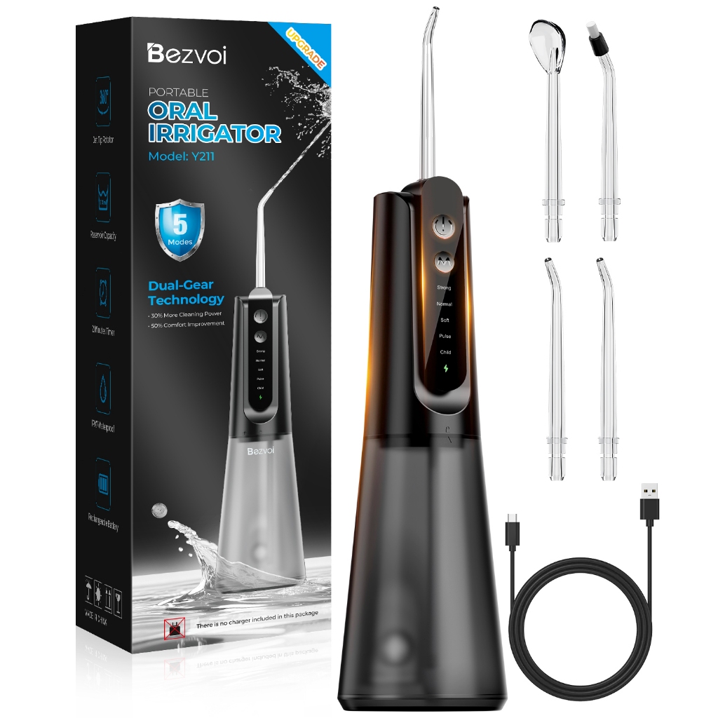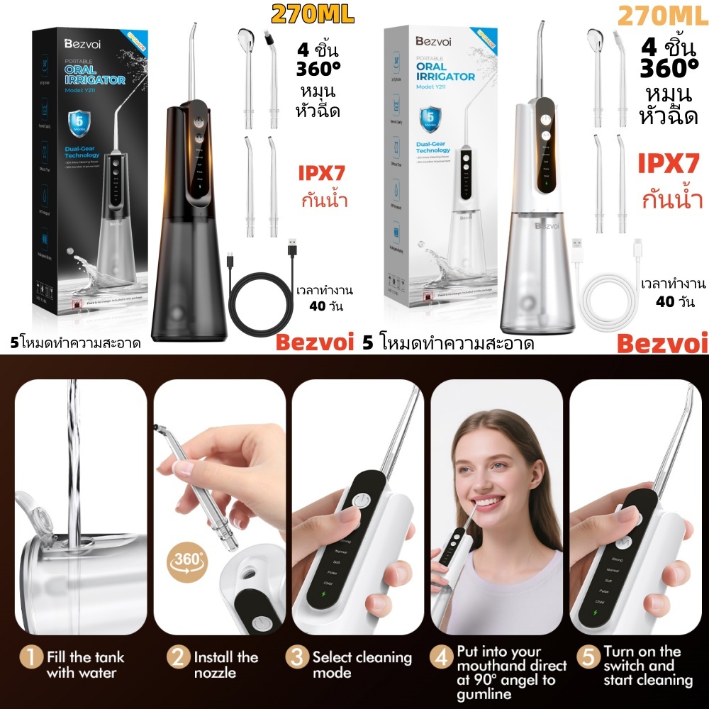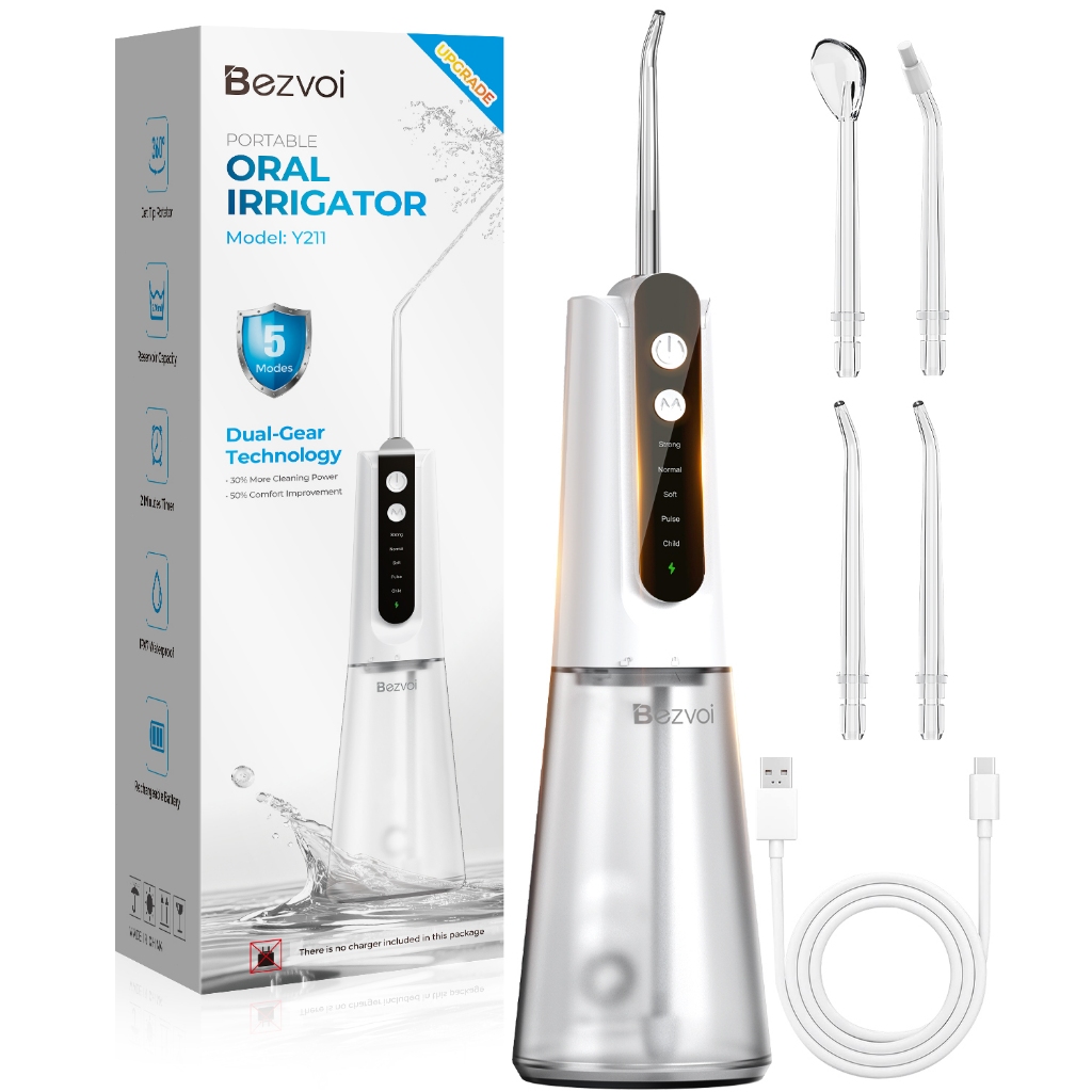 Bezvoi Y211 Flosser น้ําสําหรับทําความสะอาดฟัน Oral Irrigator 5 โหมด,4 หัวฉีด,270ML แบบพกพาทันตกรรม Care IPX7 กันน้ําทันตกรรมชลประทานอุปกรณ์