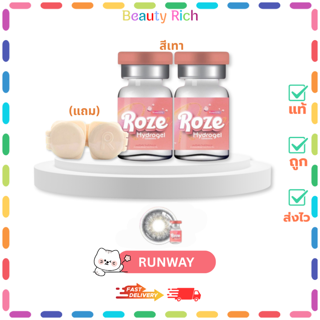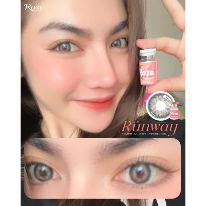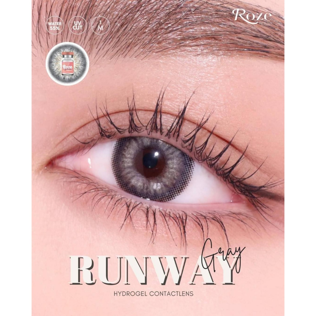 (1 คู่) Roze Hydrogel Contact Lens โรเซคอนแทคเลนส์ ค่าสายตา 0.00(ปกติ) ลาย RUNWAY #สีเทา (แถมตลับ)