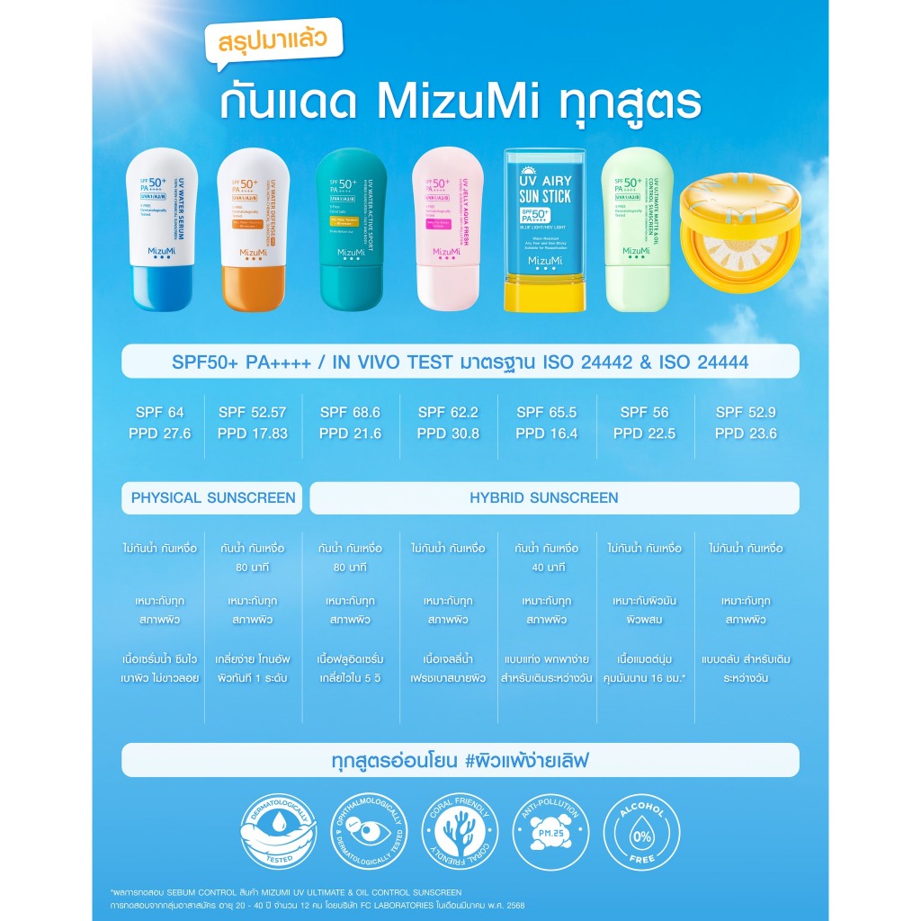 Mizumi UV Water Serum มิซึมิ ครีมกันแดด สำหรับผิวหน้า [ขนาด 8 กรัม / 40 กรัม] ครีมกันแดด SPF50+ PA++++ มีให้เลือก 5 สูตร