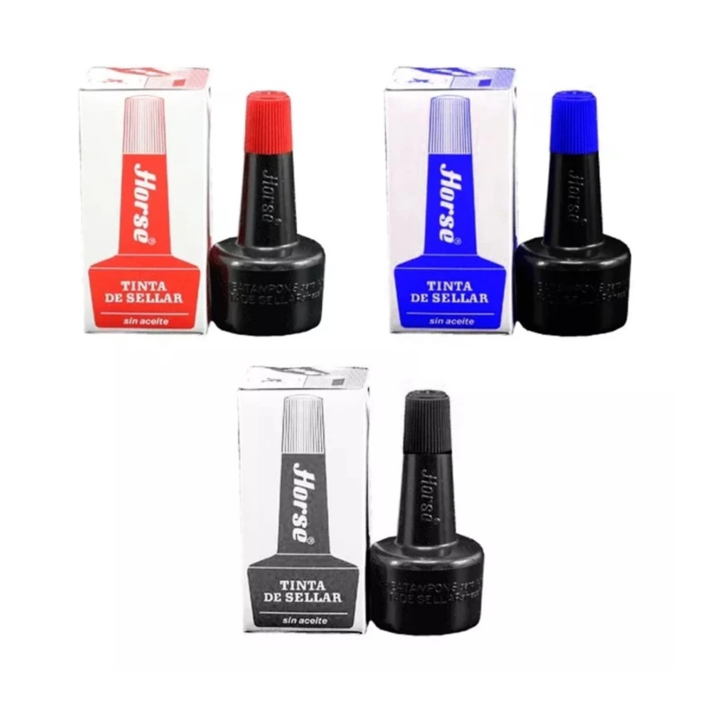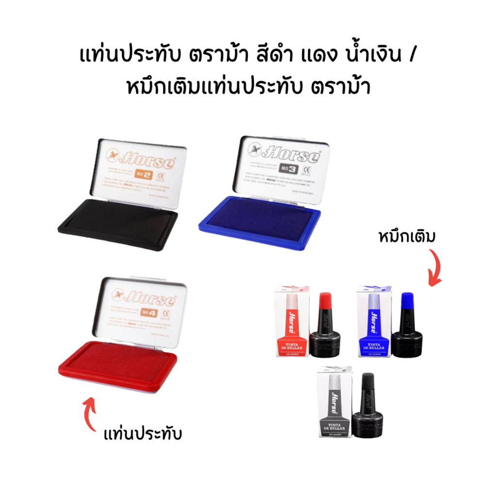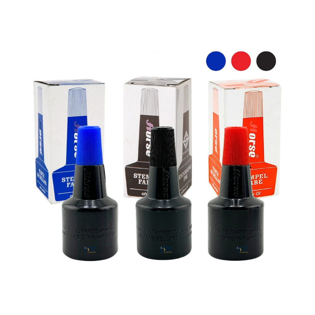 หมึกเติมแท่นประทับ ตลับชาด ตราม้า 28 CC. สีน้ำเงิน แดง ดำ