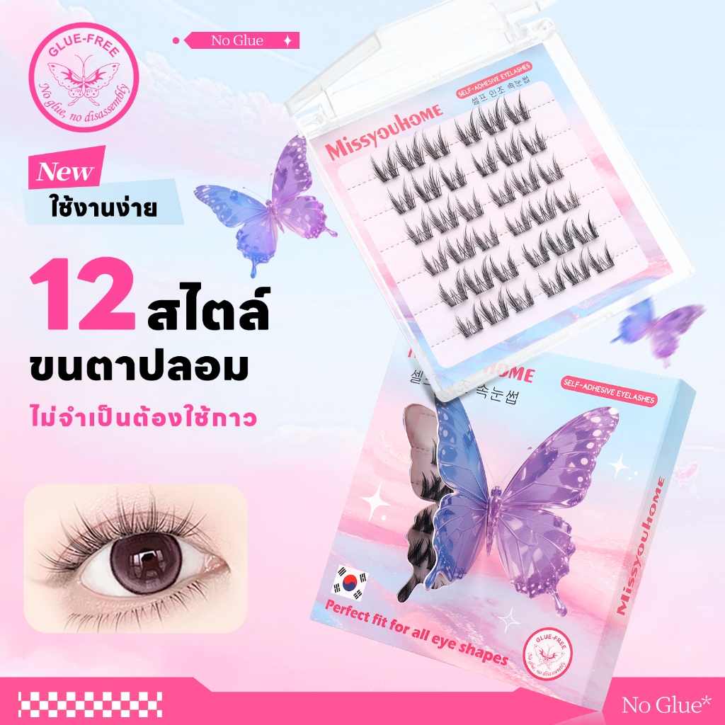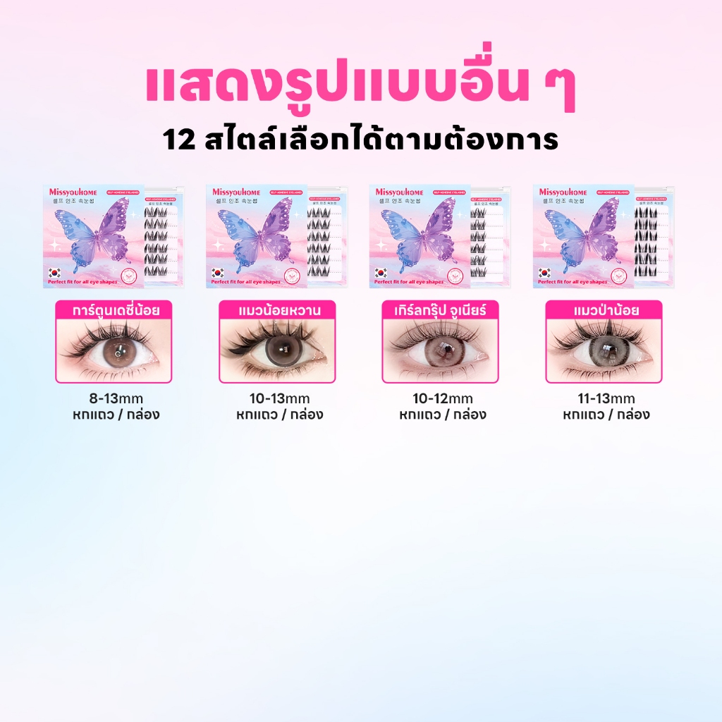 Missyouhome ขนตาปลอมมีกาวในตัว ใช้งานง่ายไม่ต้องใช้กาวน้ำ มีให้เลือก 12 สไตล์ ตอบโจทย์ทุกการแต่งหน้า KA-01-12