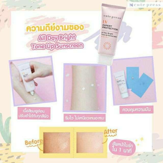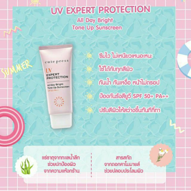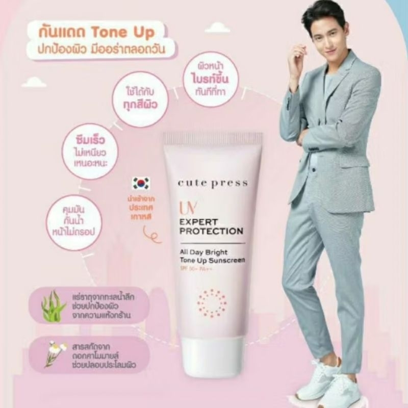 Cute Press Uv Expert Protection All Day Bright Tone Up SPF50 PA++ 30g กันแดด Tone Up