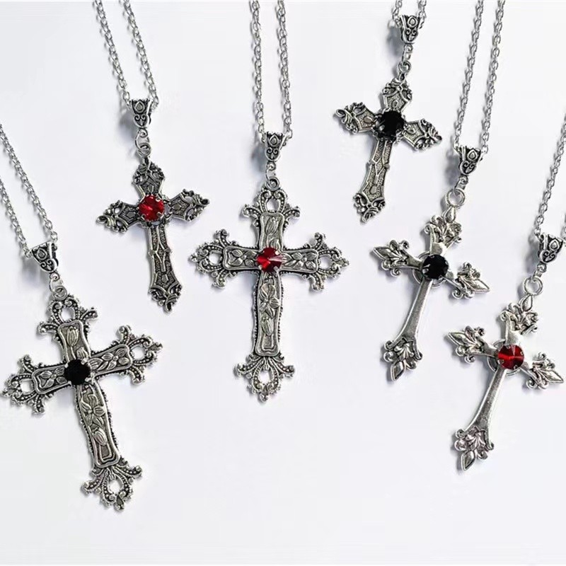 6 รูปแบบ Gothic Dark Punk สไตล์รายละเอียด Cross จี้แฟชั่น High-End Design สร้อยคอ