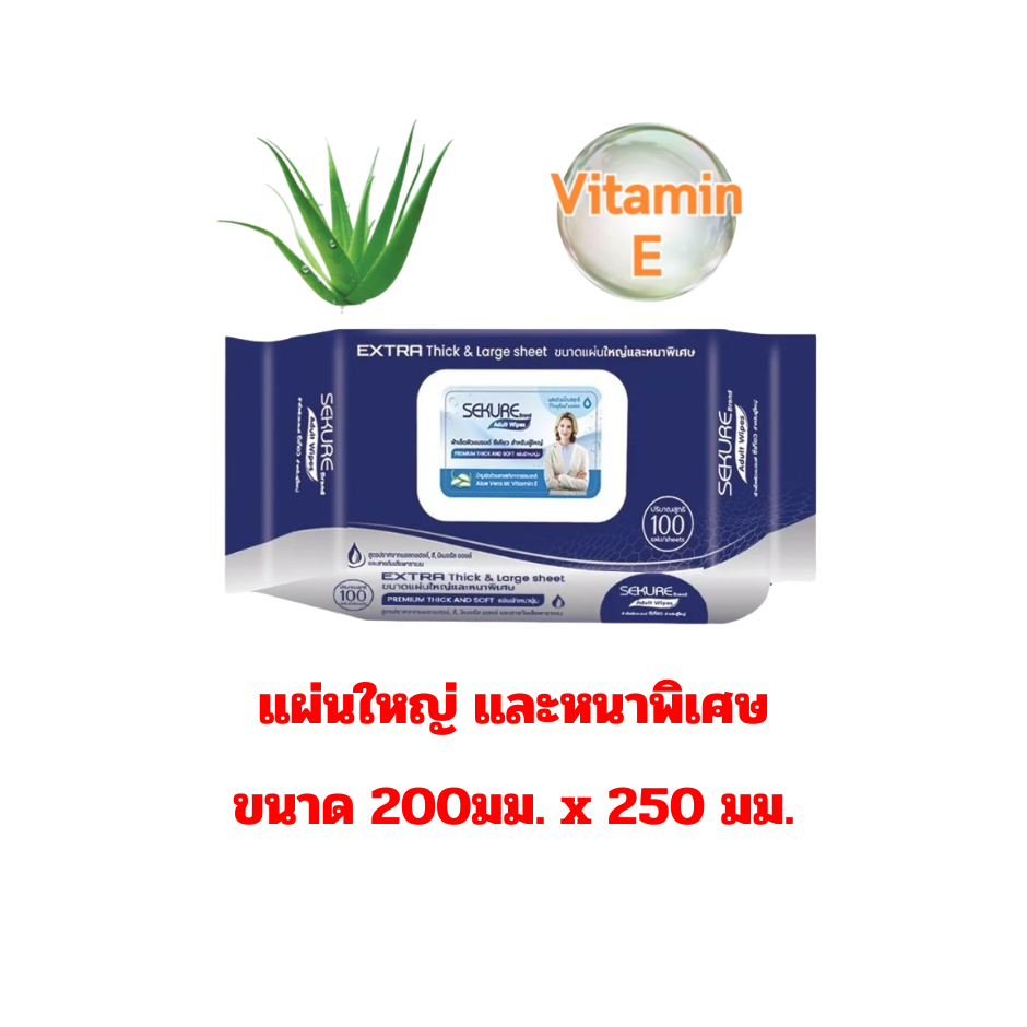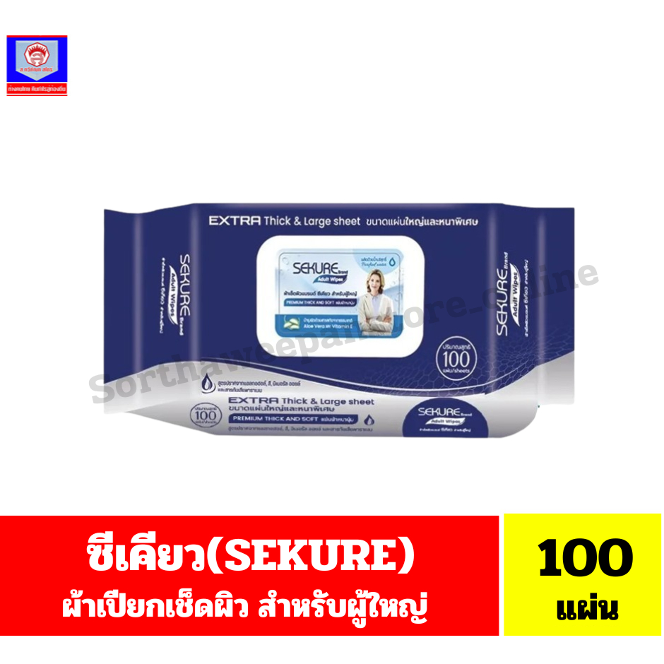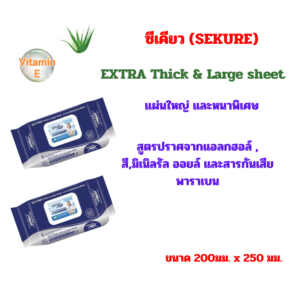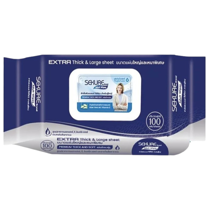ซีเคียว (SEKURE) Extre ผ้าเปียก(แผ่นใหญ่หนาพิเศษ)เช็ดทำความสะอาดผิว สำหรับบผู้ใหญ่ ปริมาณ 100 แผ่น