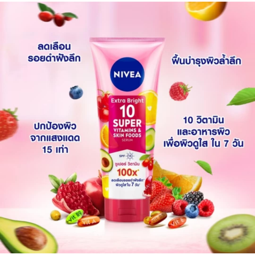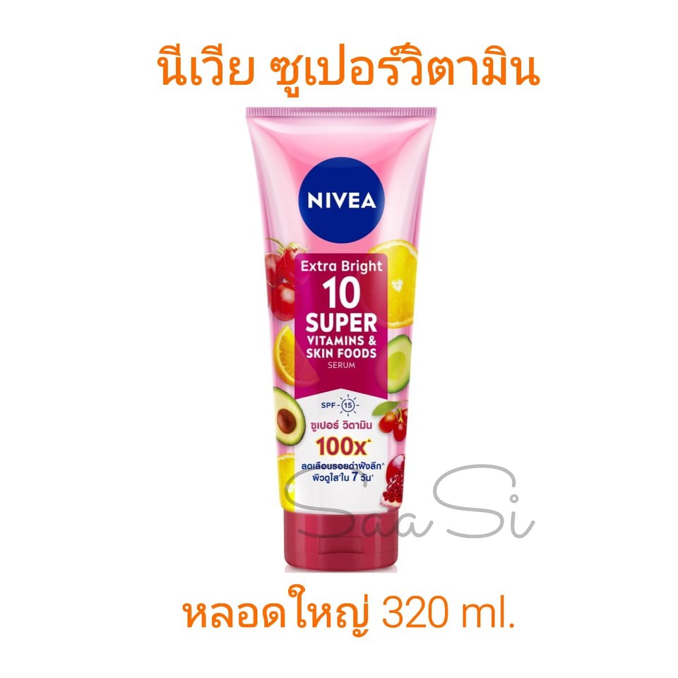 เซรั่ม นีเวีย หลอดใหญ่ ซูเปอร์ วิตามิน Nivea extra bright 10 Super Vitamins & Skinfood 300-320 ml.