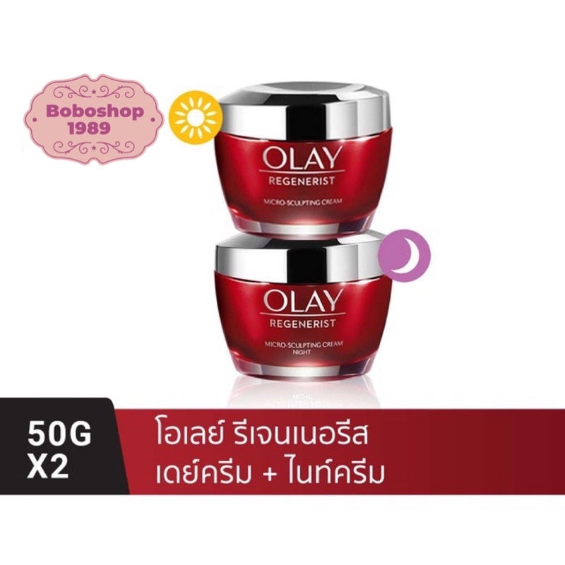 OLAY โอเลย์ Regenerist Micro-Sculpting เดย์ครีม 50g +ไนท์ครีม 50g | Day cream 50g + Night cream 50g