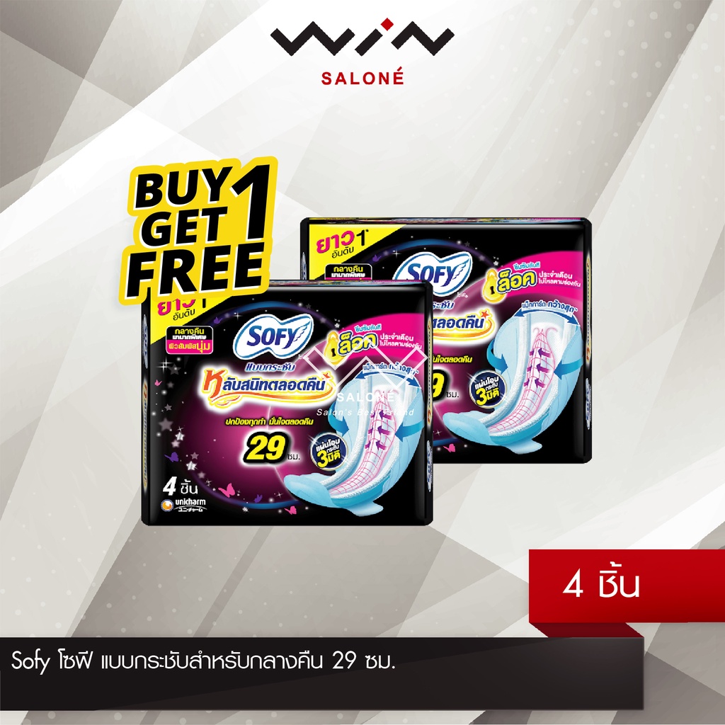 [1แถม1] โซฟี ผ้าอนามัย แบบกระชับ หลับสนิทตลอดคืน 29 ซม. แพ็ค 4 ชิ้น