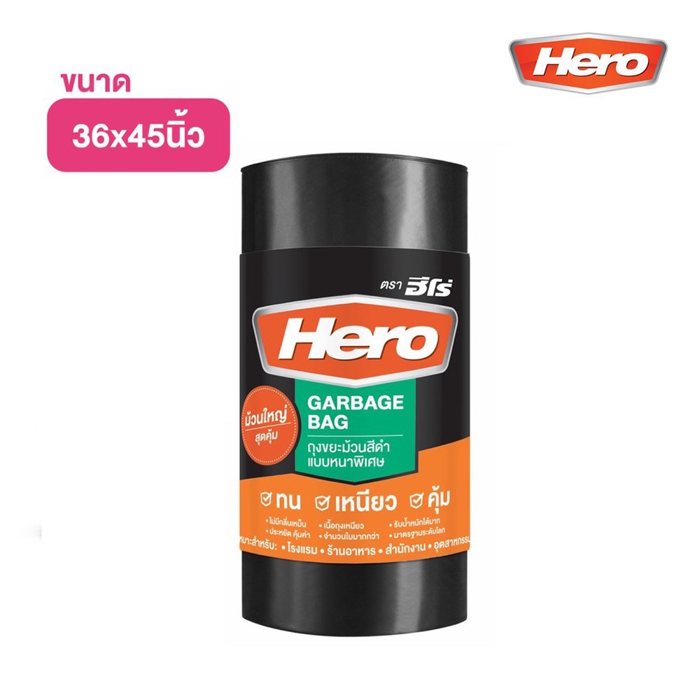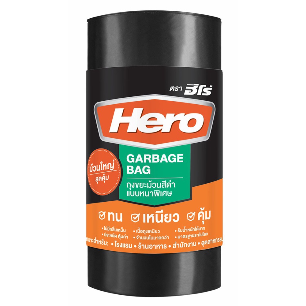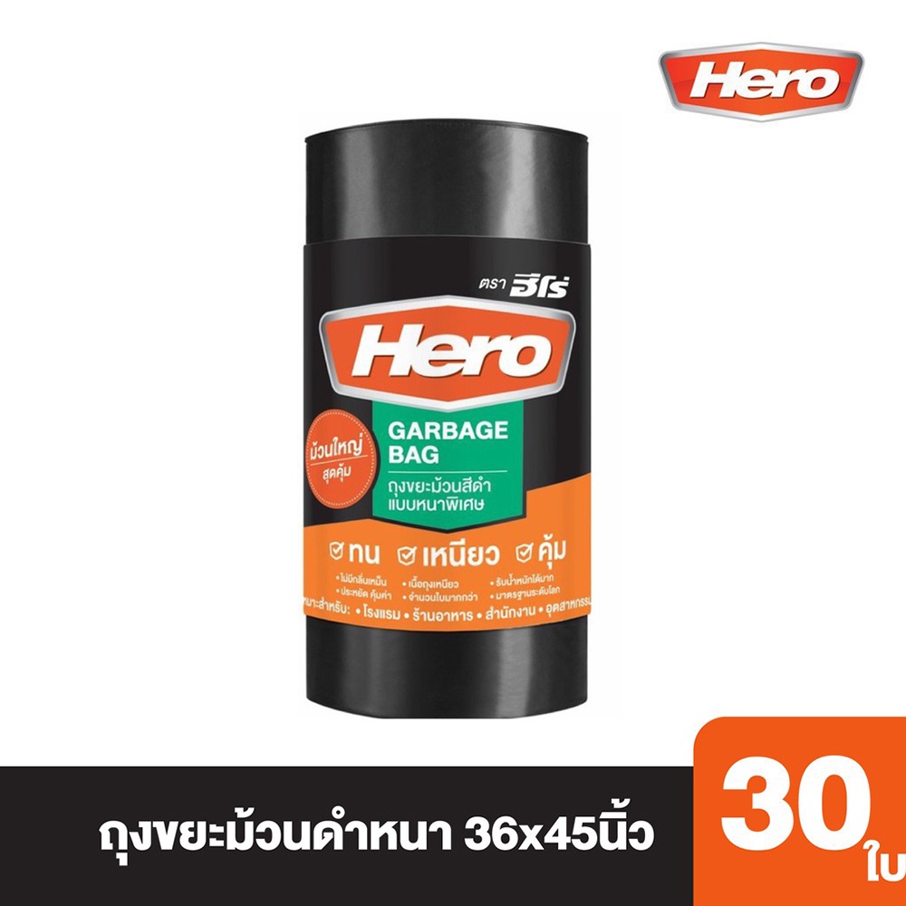 ถุงขยะ ถุงขยะม้วนดำหนา Hero Super Strong 36x45นิ้ว XL (ม้วน30ใบ) ถุงดำ ถุงขยะดำ [S24]