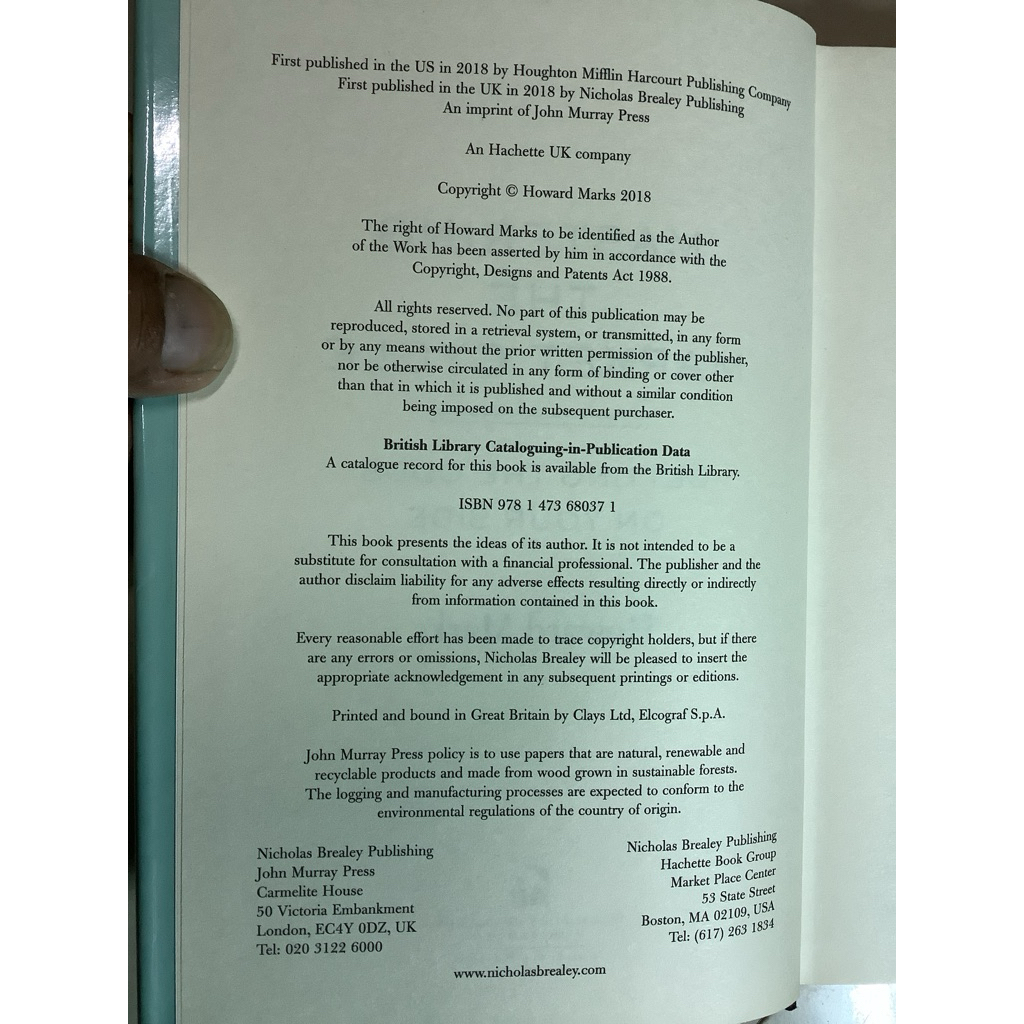 หนังสือการลงทุน ปกแข็ง(ภาษาอังกฤษ) Mastering The Market Cycle (323หน้า) by Howard Marks (เหนือกว่าวัฏจักรการลงทุน)