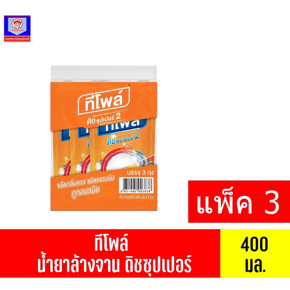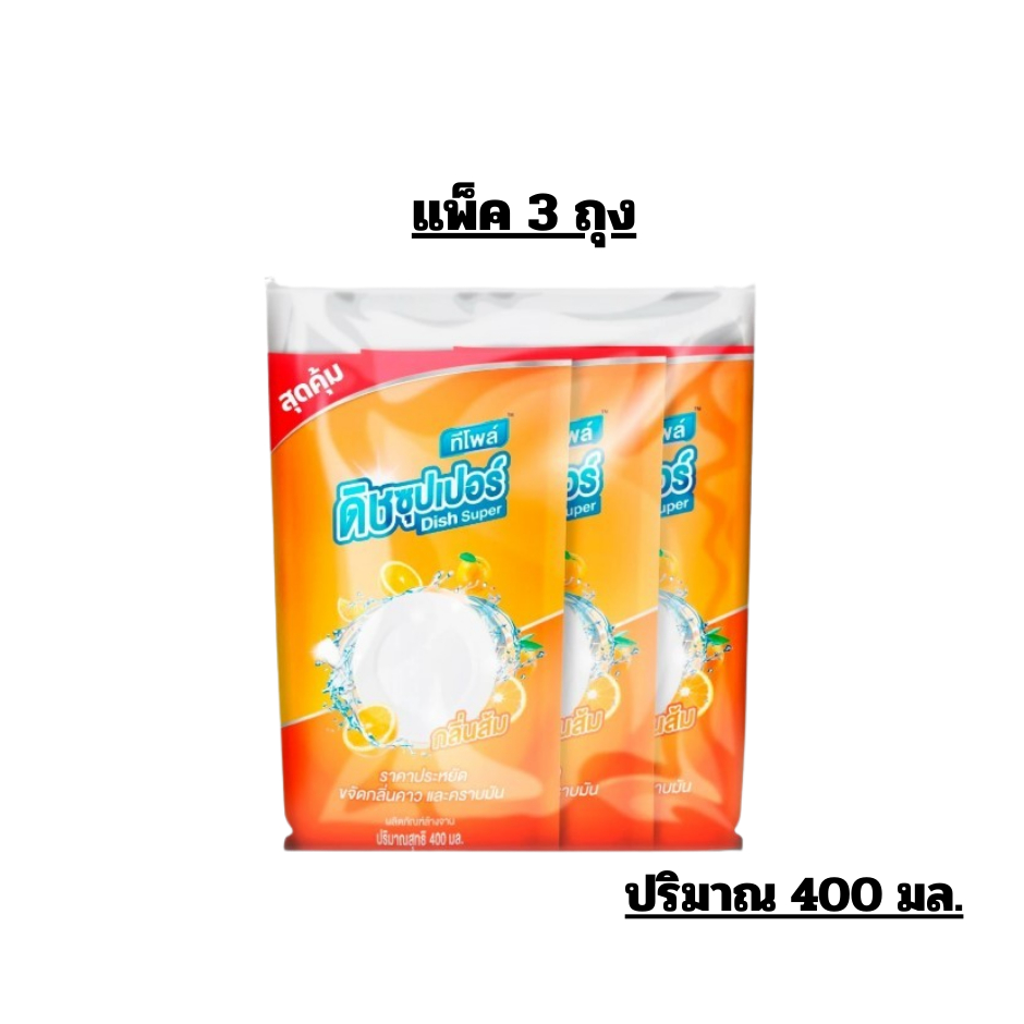 ทีโพล์ น้ำยาล้างจาน ดิชซุปเปอร์ กลิ่นส้ม ปริมาณ 400 มล.//แพ็ค3ถุง//