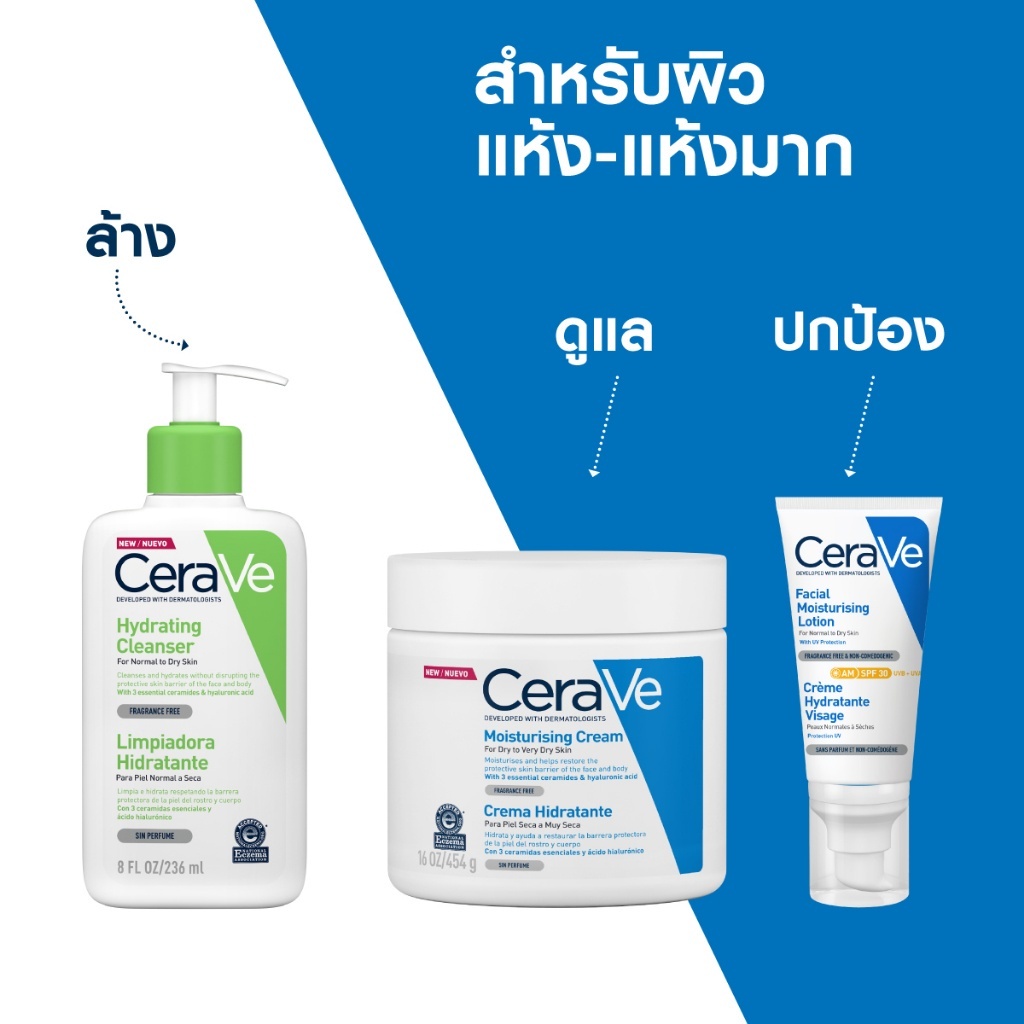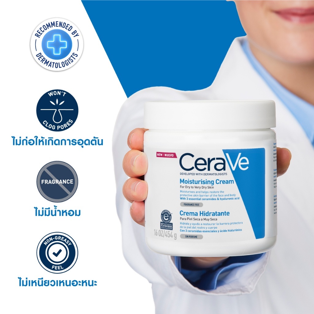 Exp 02/2027 เซราวี CERAVE Moisturising Cream ครีมบำรุงผิวหน้า ผิวกาย ผิวแห้ง-แห้งมาก เนื้อเข้มข้น 454g มอยเจอร์ไรเซอร์