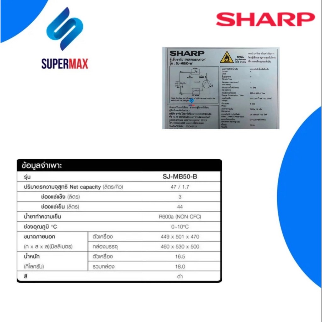 SHARP ตู้เย็นมินิบาร์ 1 ประตู SHARP SJ-MB50B สีดำ ขนาด 1.7 คิว ประหยัดไฟ ขนาดกระทัดรัด รับประกันคอม5ปี