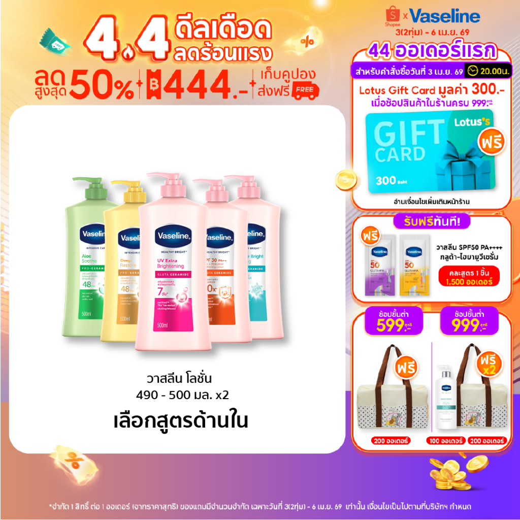 โลชั่นบำรุงผิวกาย วาสลีน เฮลธี้ ไบรท์ ยูวี เอ็กซ์ตร้า ไบร์ทเทนนิ่ง 470-480 มล.(เลือกสูตรข้างใน)