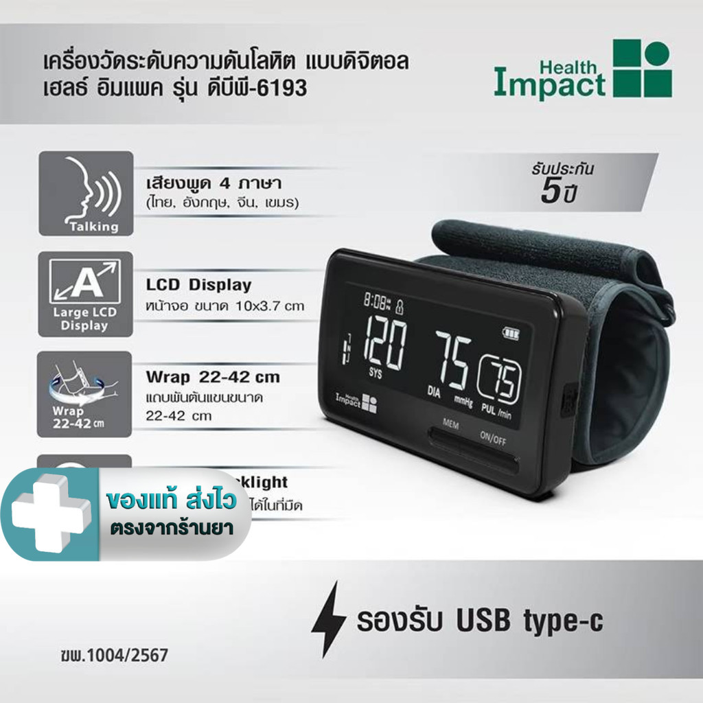 เครื่องวัดความดันโลหิต แบบดิจิตอล Health impact Digital Blood Pressure Monitor รุ่น DBP-6193 แถบพันต้นเเขนแบบไร้สาย [PC]