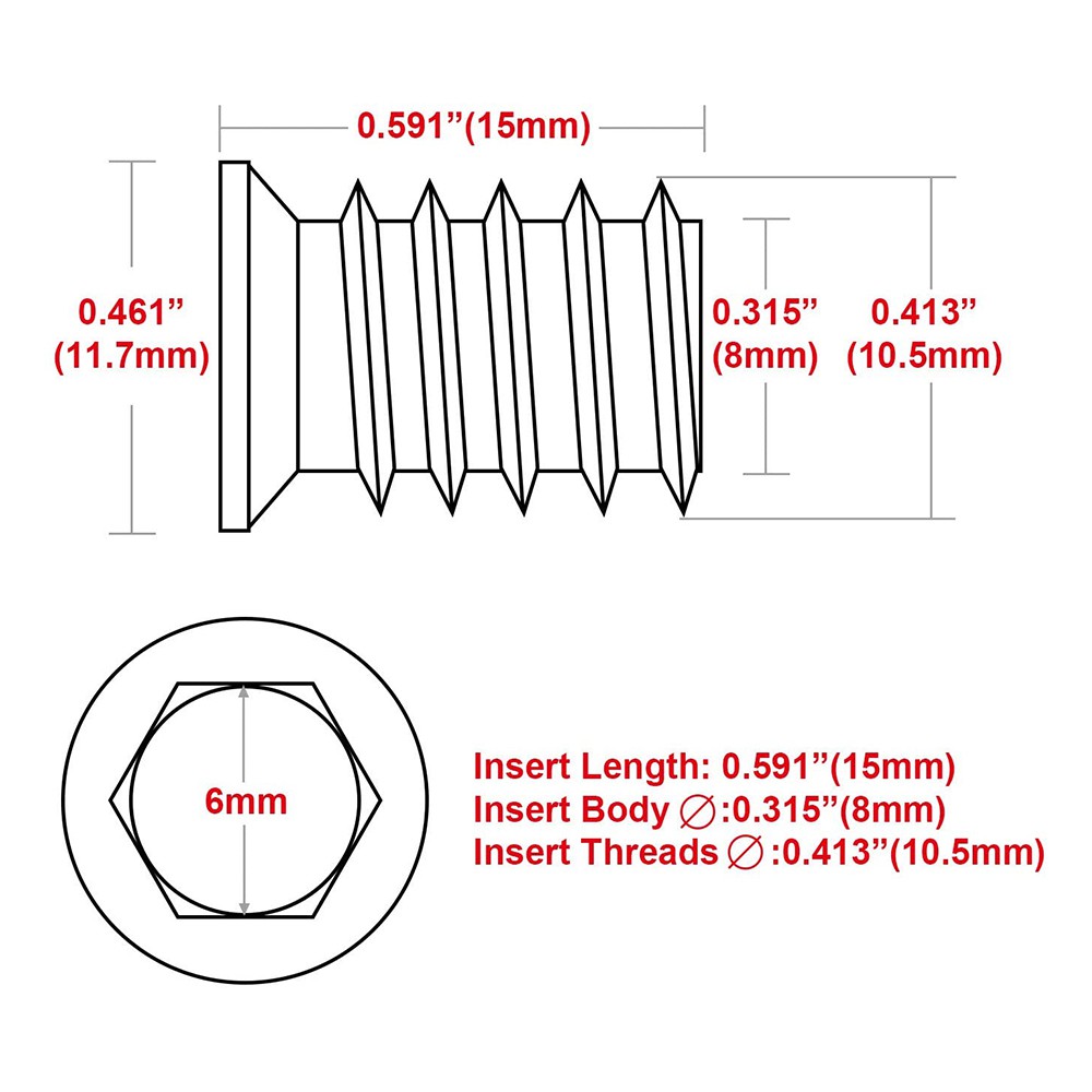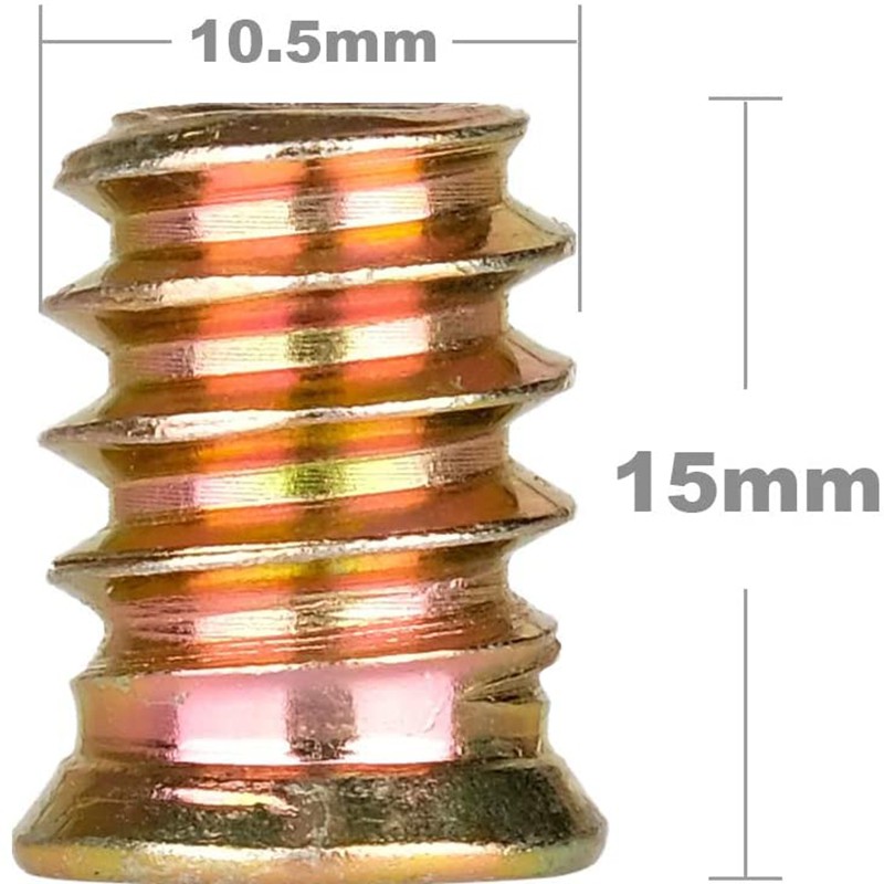 100Pcs M6 x 15mm Furniture Screw in Nut Threaded Wood Inserts Bolt Fastener Connector Hex Socket Drive