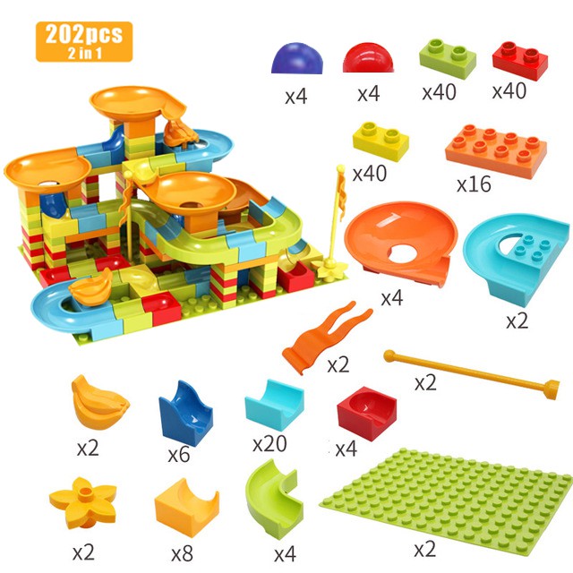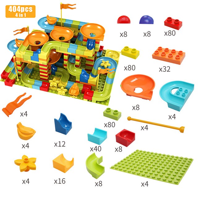 101-404 PCS Marble Race Run Maze Balls Track Building Blocks DIY Funnel Slide Compatible Duplo Big size Bricks Toys