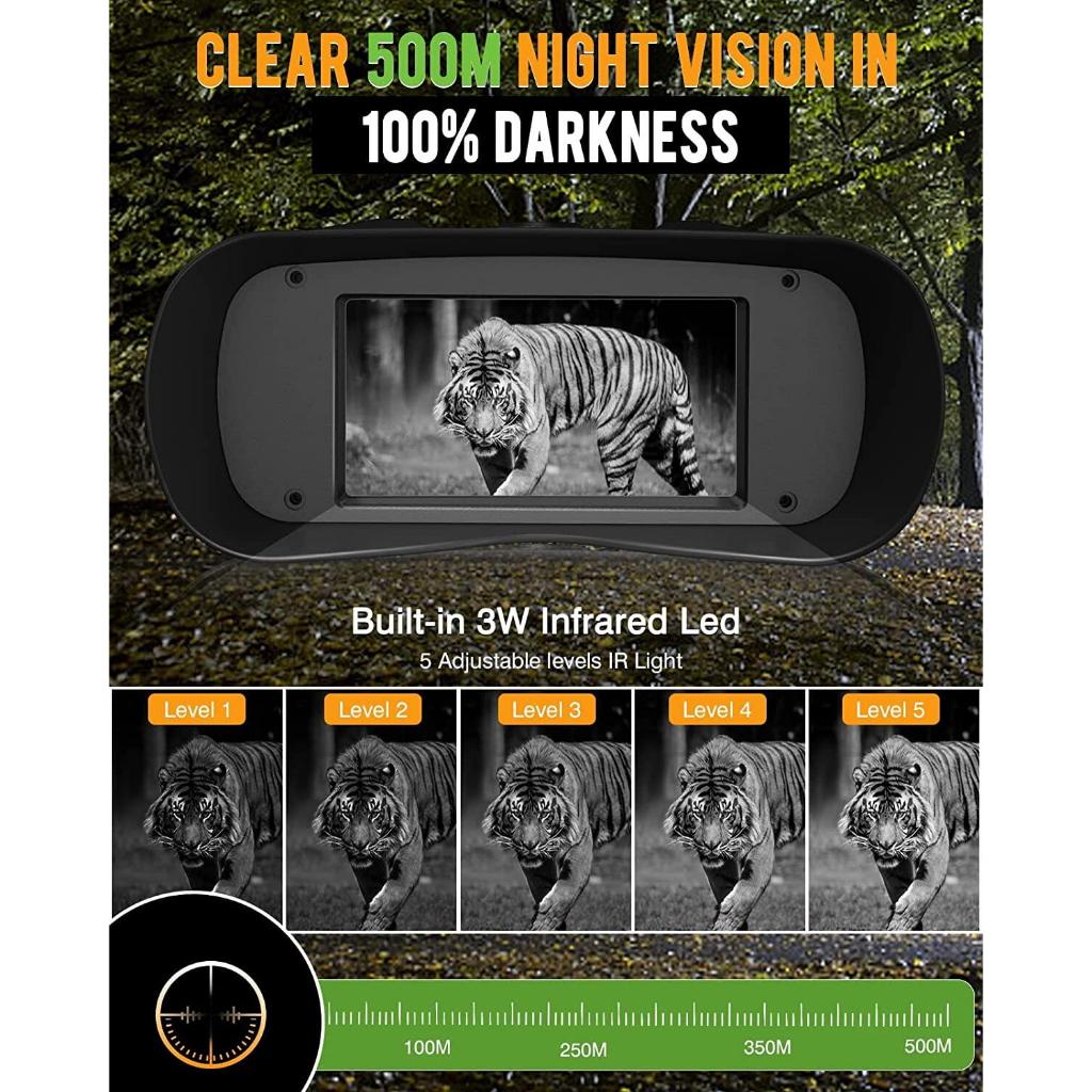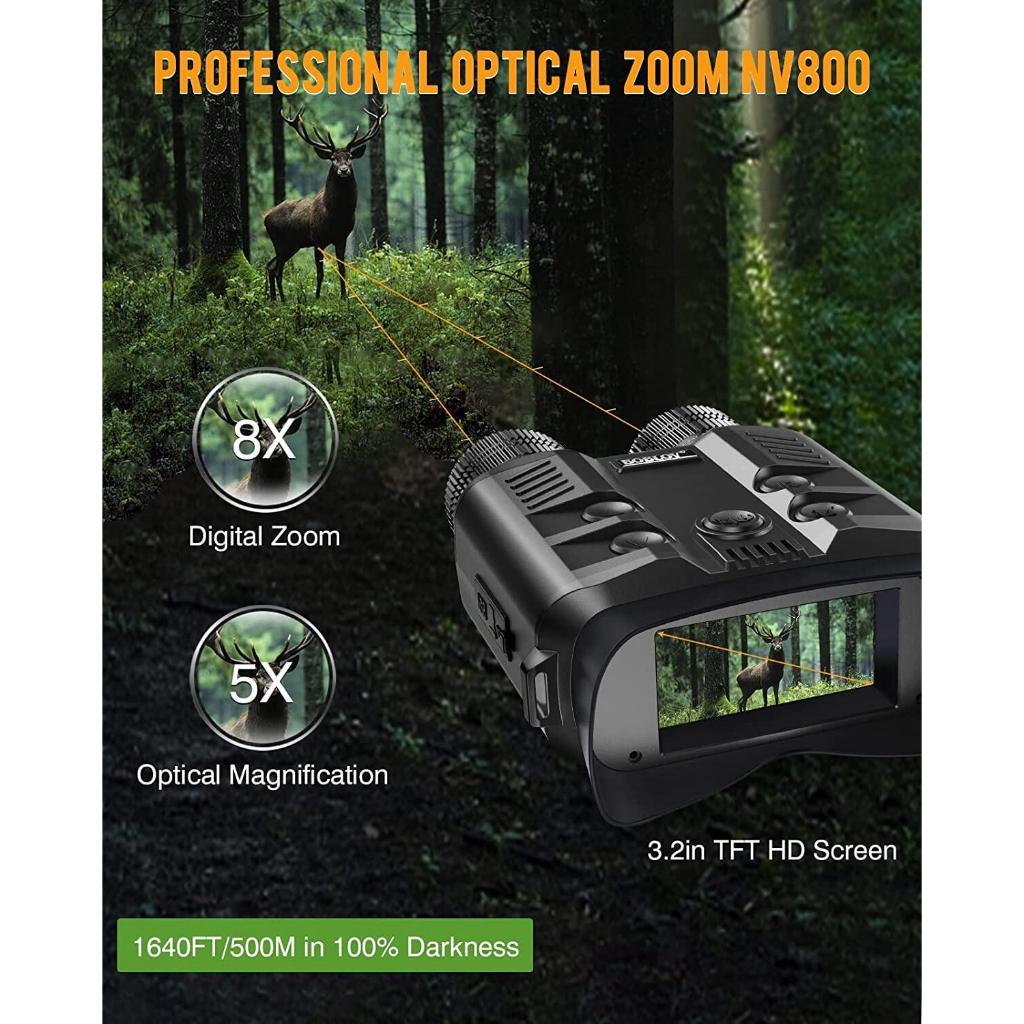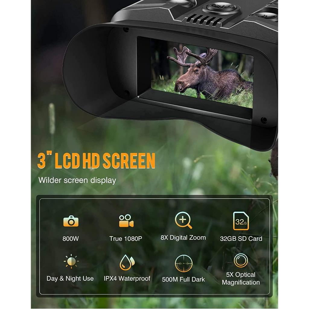 1080P/30fps Night Vision Binoculars 500M All-Black Night Vision Large Video Screen 3", 5X Optical Zoom 8X Digital Zoom