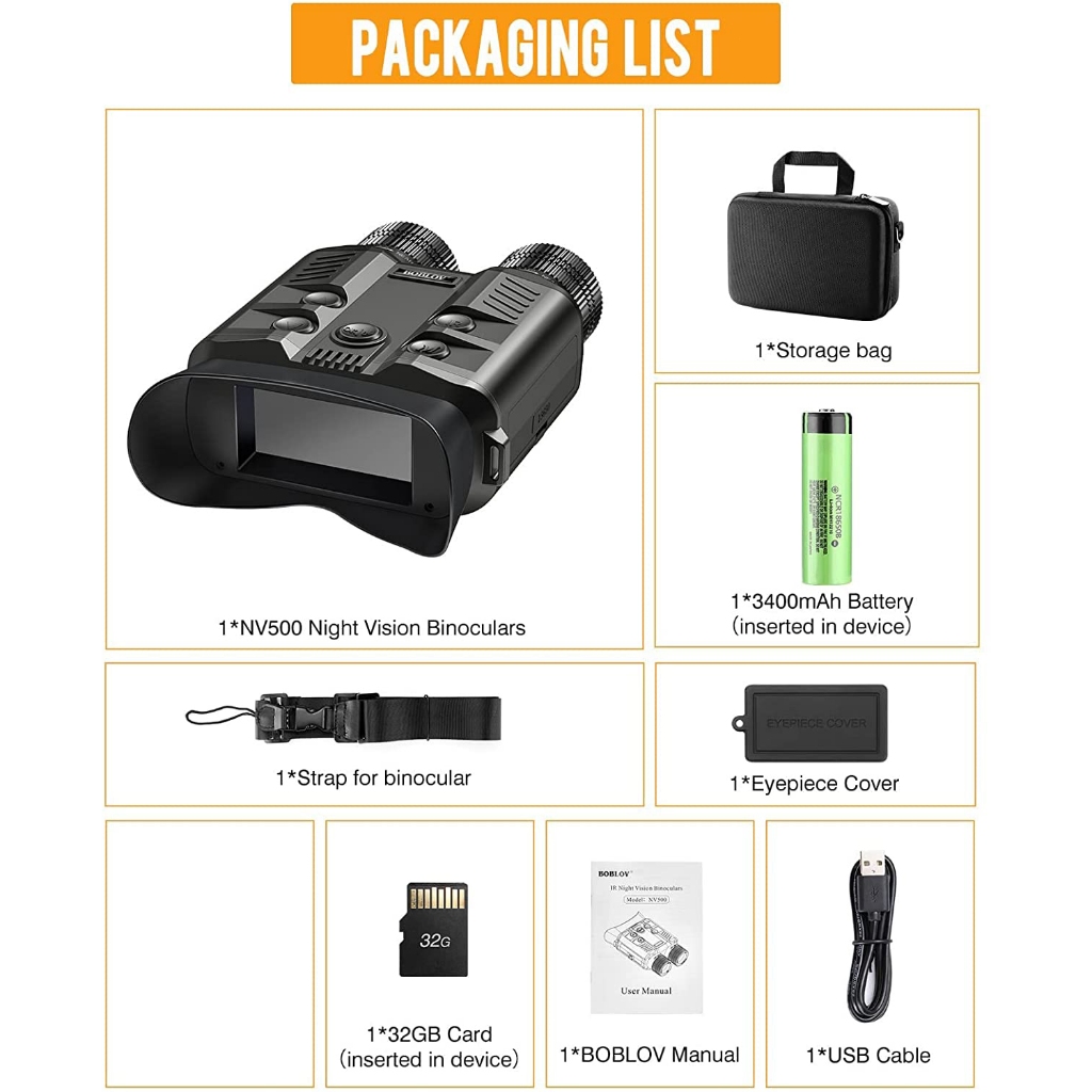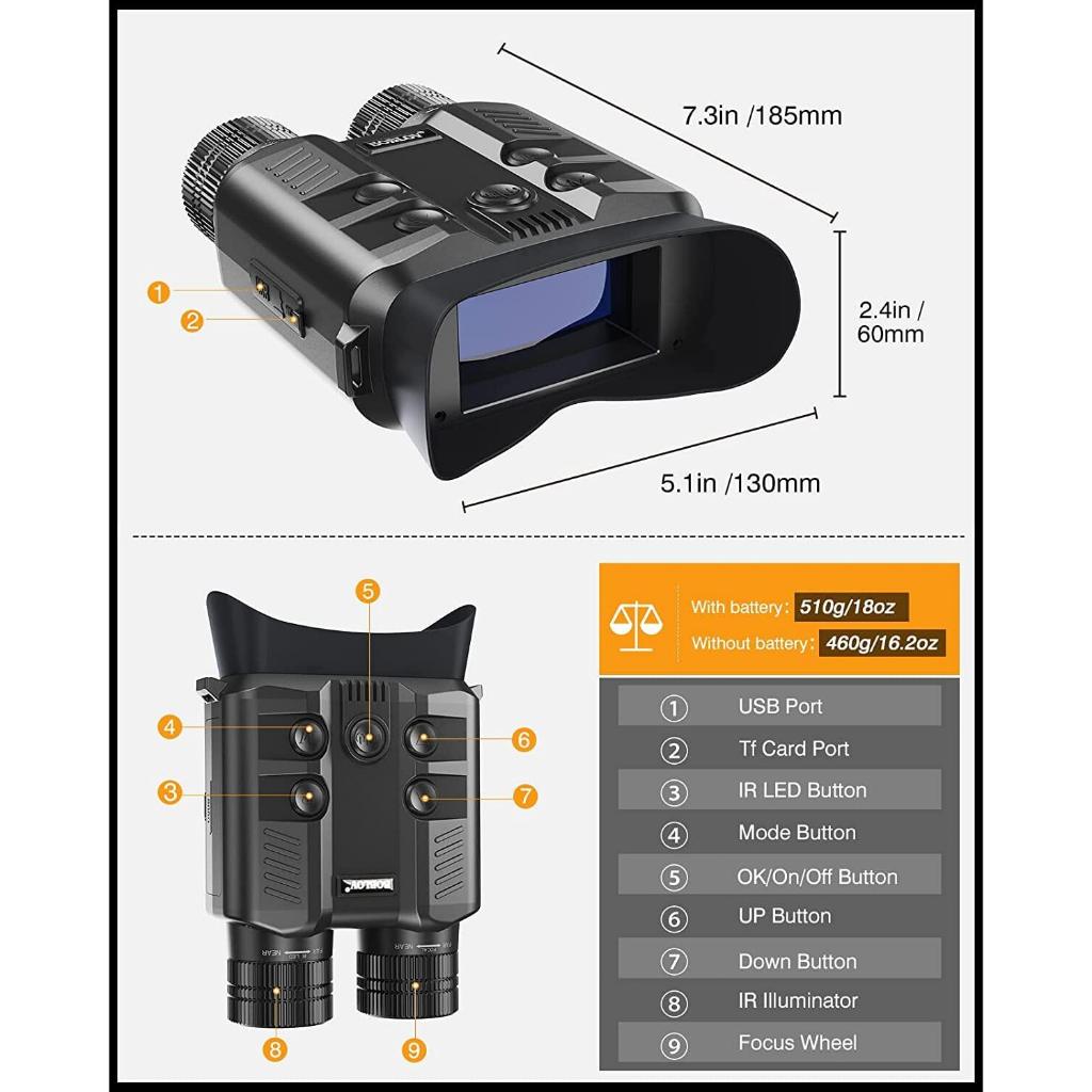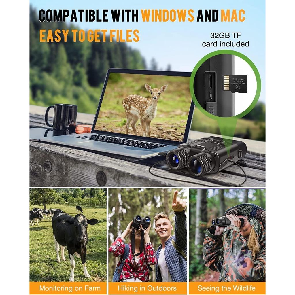 1080P/30fps Night Vision Binoculars 500M All-Black Night Vision Large Video Screen 3", 5X Optical Zoom 8X Digital Zoom