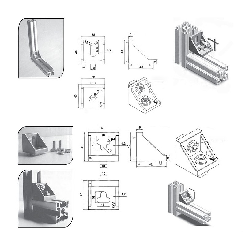 10pcs 3030 System Aluminium Angle Code Nut Hole Bracket