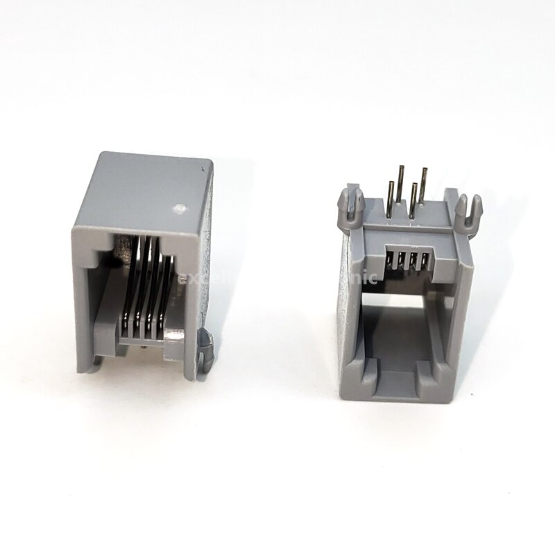10pcs RJ11 Telephone Socket Gray 4P4C 6P4C 6P6C Plug Horizontal Right Angle 4P4C 4-pin Female Socket