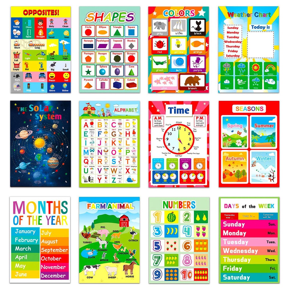 12/18 Charts ABC Educational Posters Big Size for Toddlers Classroom Decorations Kindergarten Homeschool Supplies Presch