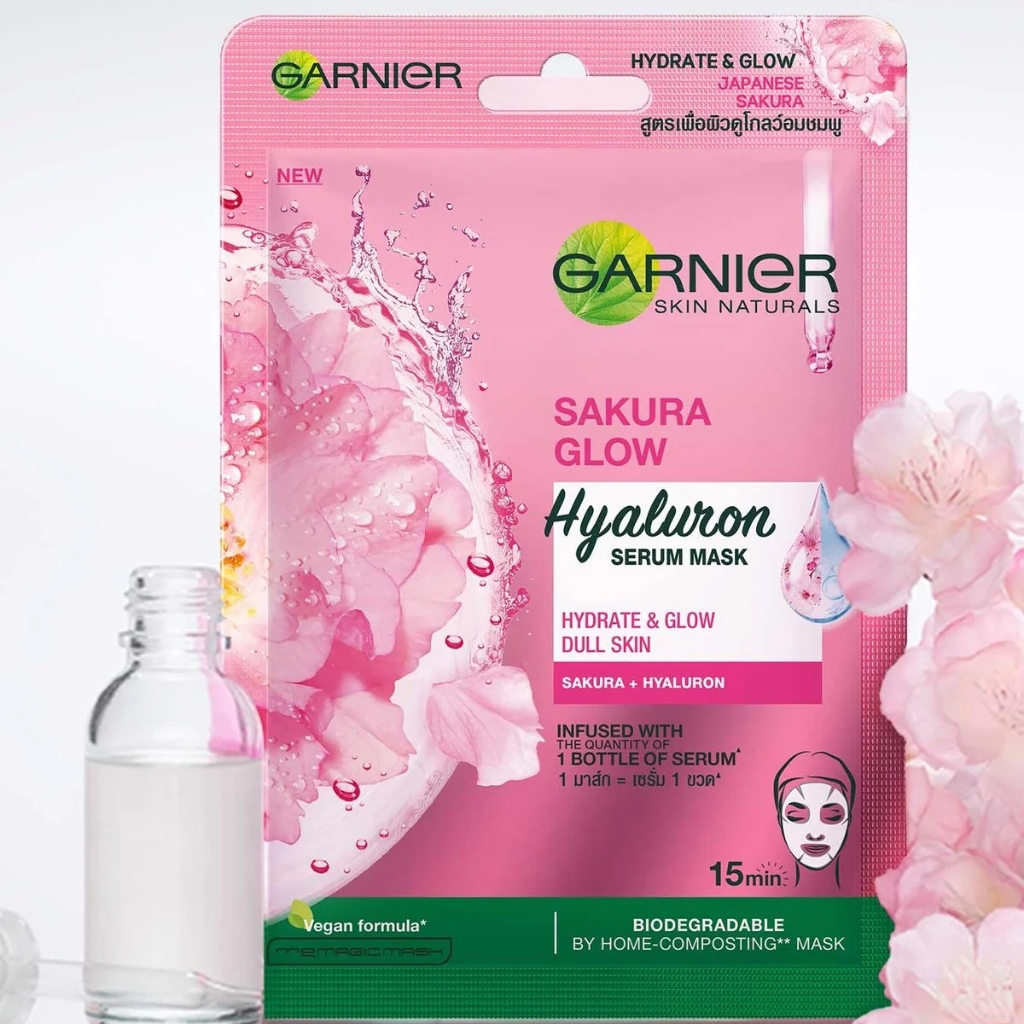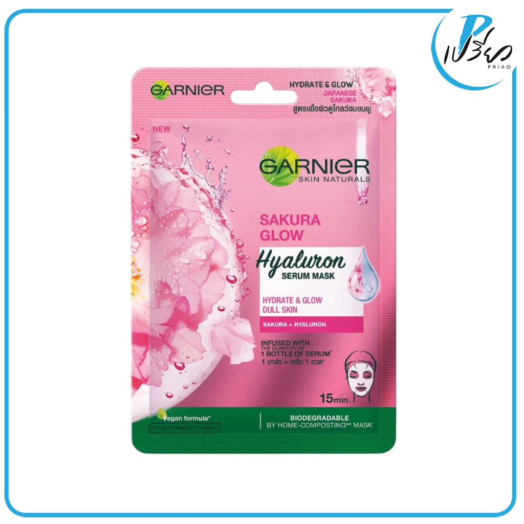 GARNIER การ์นิเย่ สกิน แนทเชอรัลส์ ซากุระ โกลว์ ไฮยาลูรอน เซรั่ม มาส์ก 28 กรัม
