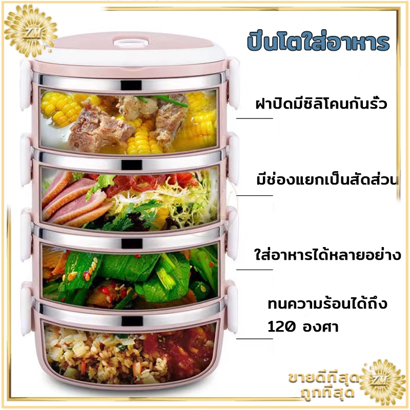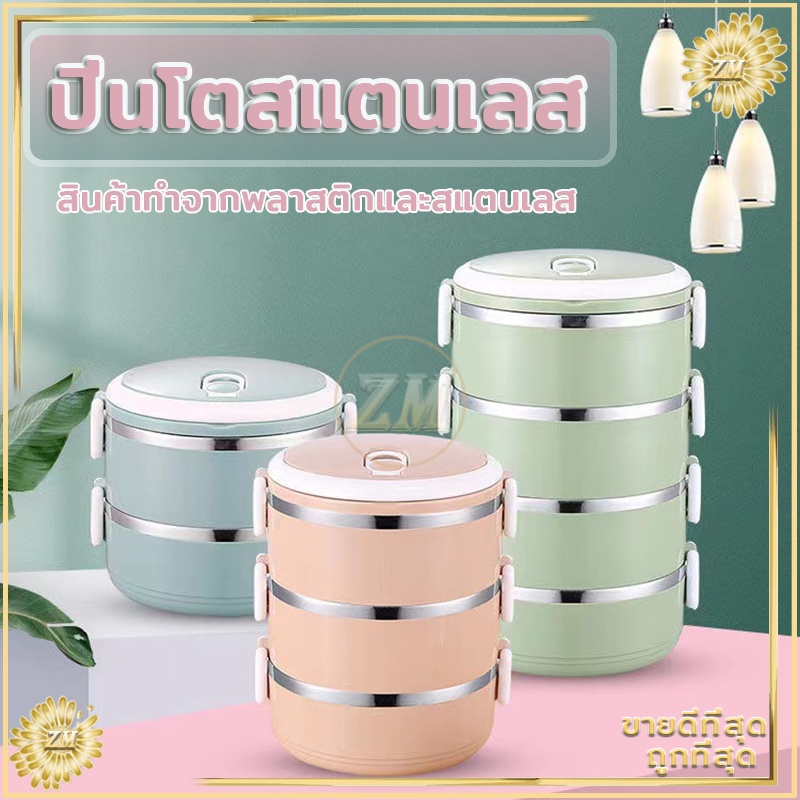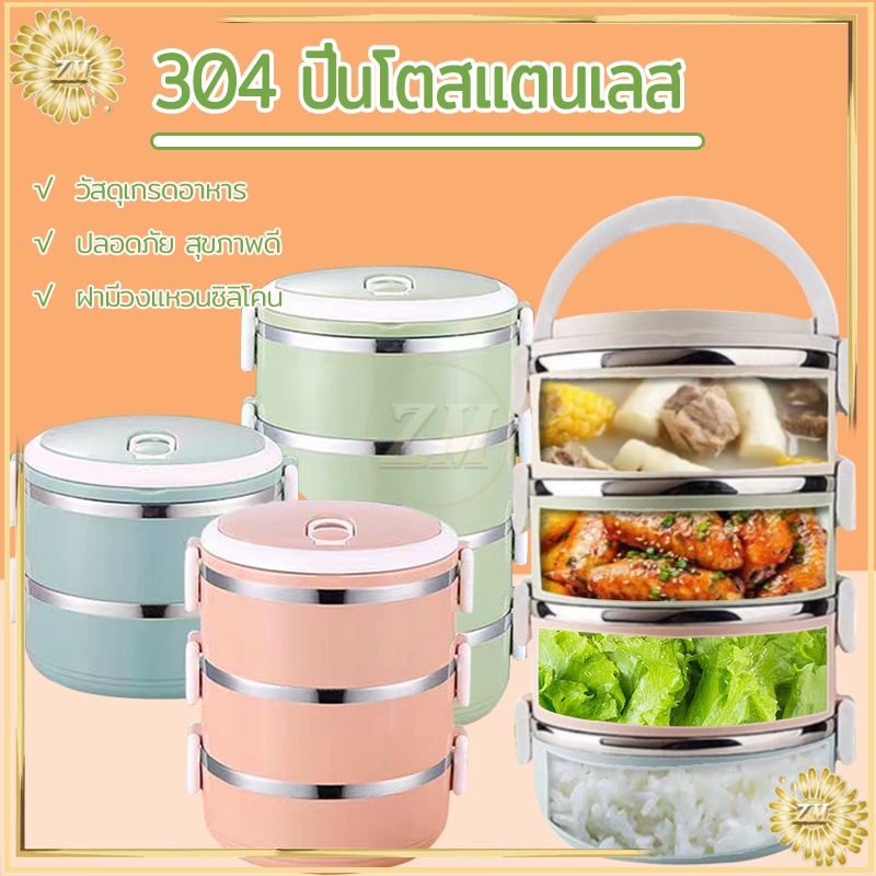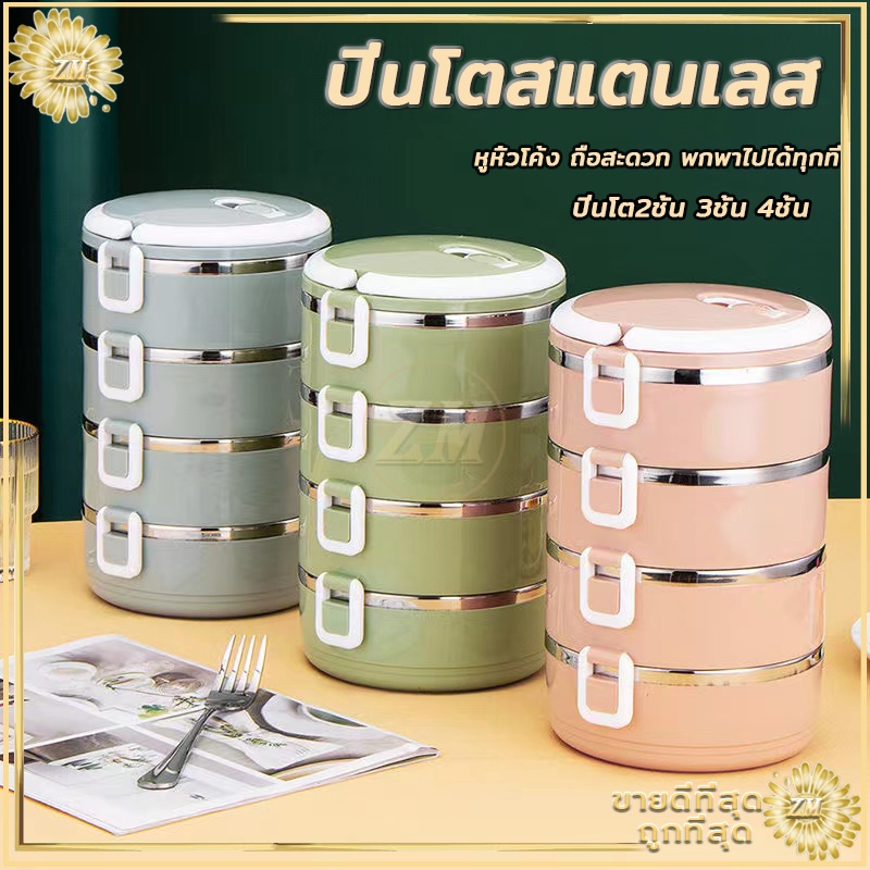 ปิ่นโต ปิ่นโตใส่อาหาร 2/3/4ชั้น ปิ่นโตเก็บอุณหภูมิ กล่องใส่ข้าว สแตนเลส 304 สามารถเก็บอุณหภูมิได้ 3-4 ชั่วโมง มี 3 สี