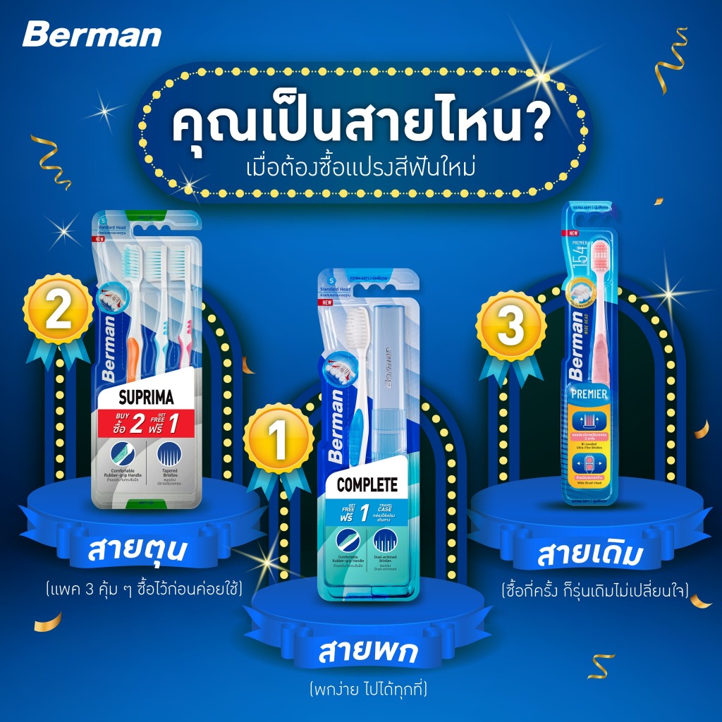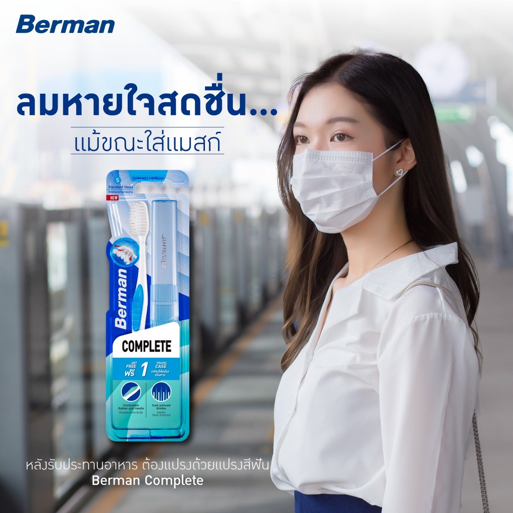 Berman แปรงสีฟัน เบอร์แมนคอมพลีท รุ่น เอ็กซ์ตร้าซอฟ+กล่องแปรง คละสี