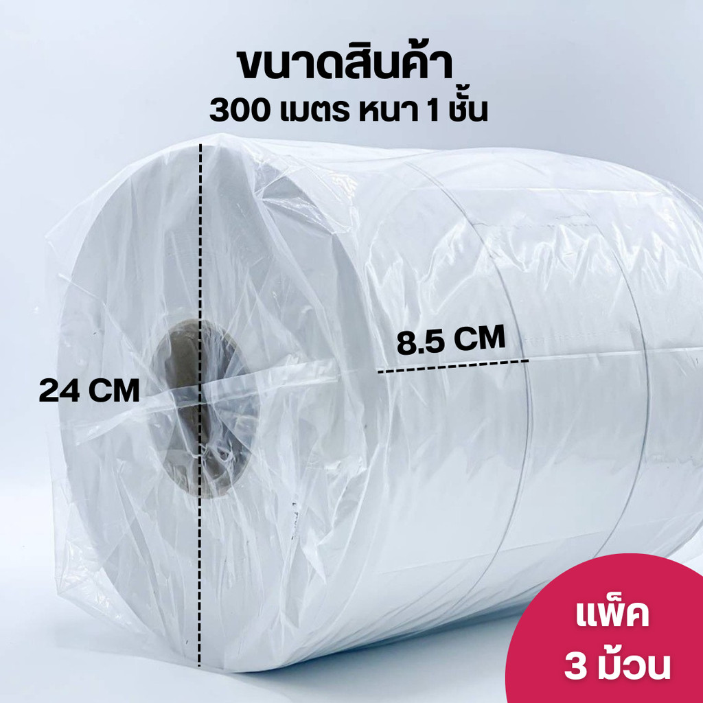 (แพ็ค 3 ม้วน) กระดาษชําระม้วนใหญ่หนา 1 ชั้นยาว 300 เมตร ทิชชู่ในห้องน้ำ กระดาษชำระ by กำตังค์