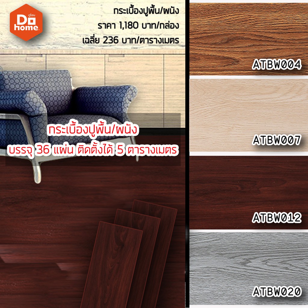 PORCELA กระเบื้องยางหลังกาว รุ่น ATBW0012 สีไม้น้ำตาลแดง |B|
