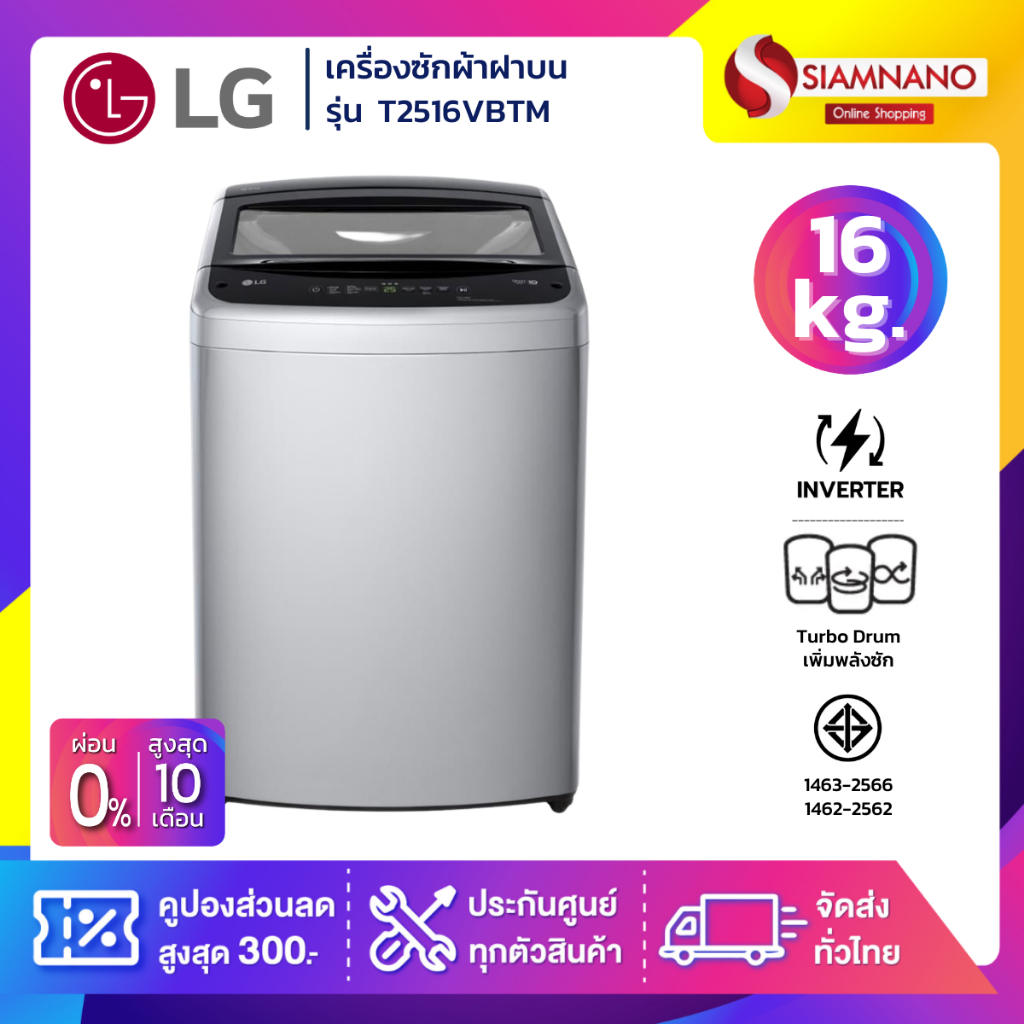 รุ่นใหม่! เครื่องซักผ้าฝาบน LG Inverter รุ่น T2516VBTM ขนาด 16 KG สีเทา (รับประกันนาน 10 ปี)