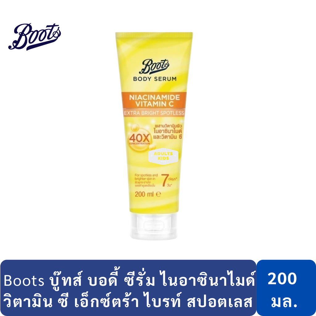 Boots บู๊ทส์ Body Serum บอดี้ ซีรั่ม Niacinamide Pro-retinol bodylotion ขนาด 200 ml. ( บอดี้ โลชั่น เลือกสูตรด้านใน )