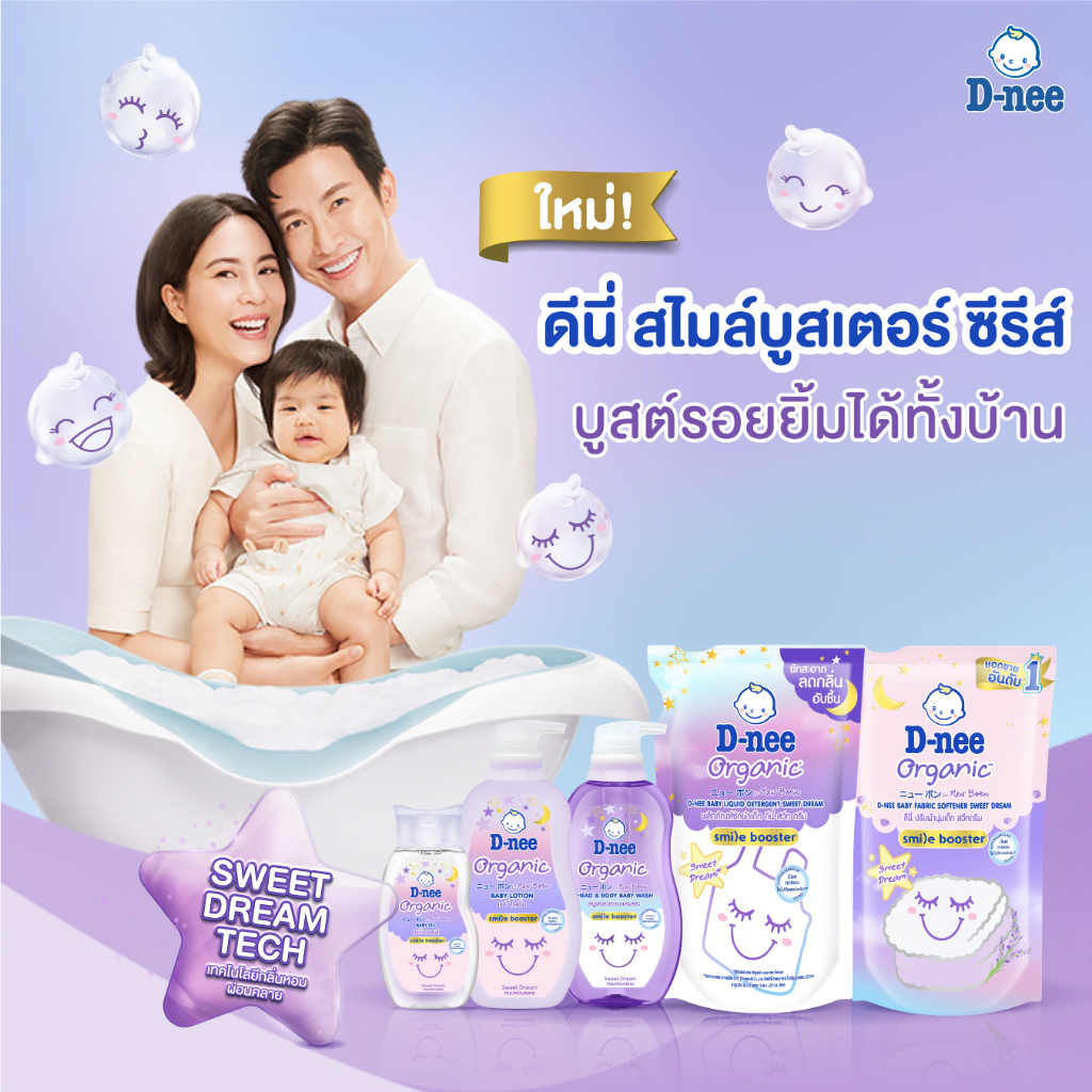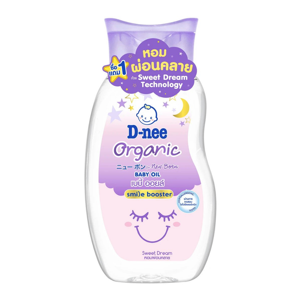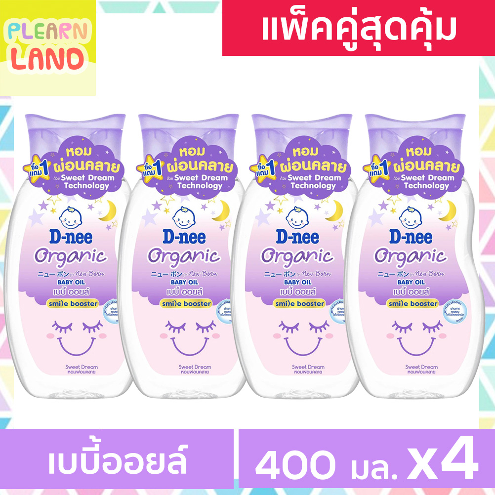 แพ็ค 4 สุดคุ้ม D Nee ดีนี่ เบบี้ออยล์ ออร์แกนิค สวีทดรีม Baby Oil Organic ออย สไมล์ บูสเตอร์ ม่วง 200 ml. 4 ขวด เบบี้ออย