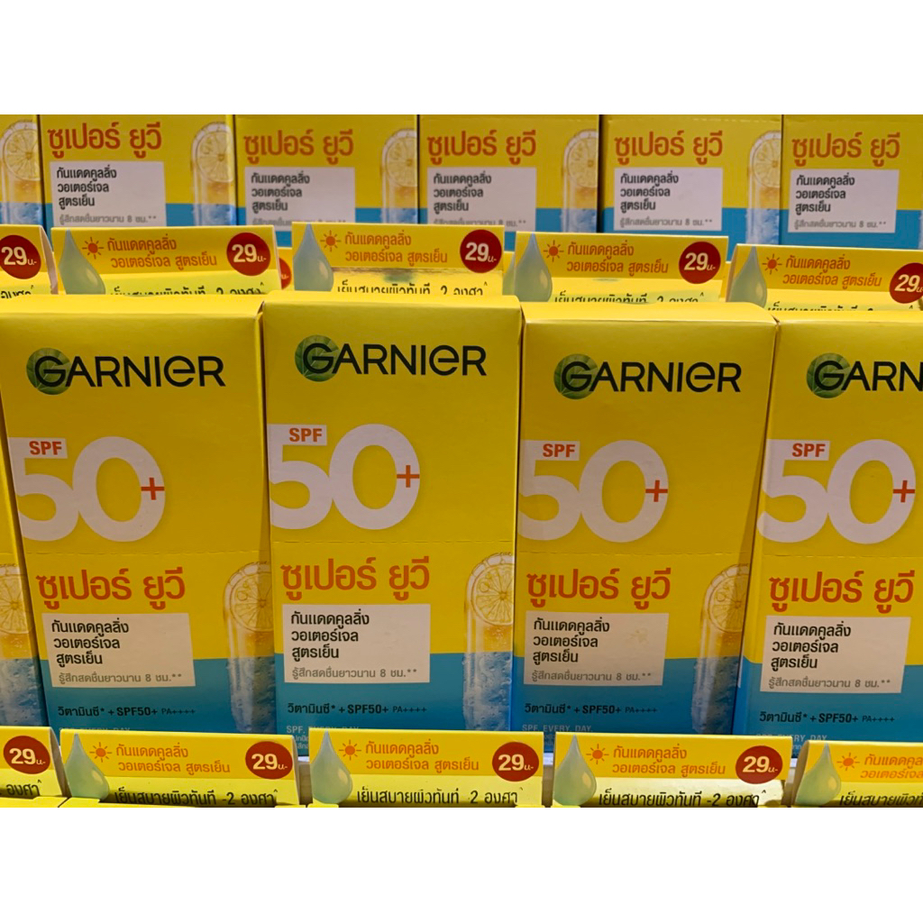 ✅ลดราคา✅การ์นิเย่ ซูเปอร์ ยูวี คูลลิ่ง วอเตอร์เจล ซันสกรีน วิตามินซี+เอสพีเอฟ50+พีเอ++++107.5มล.หมดอายุ03/28(1กล่อง6ซอง)
