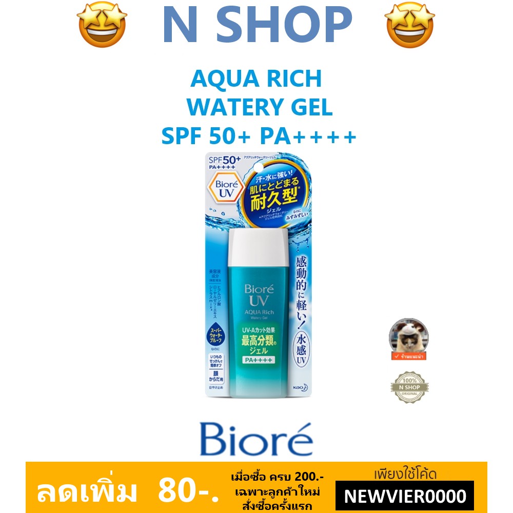 🌟 โลชั่น กันแดด เนื้อเจล สูตรน้ำ บีโอเร BIORE UV AQUA RICH WATERY GEL SPF50+/PA++++