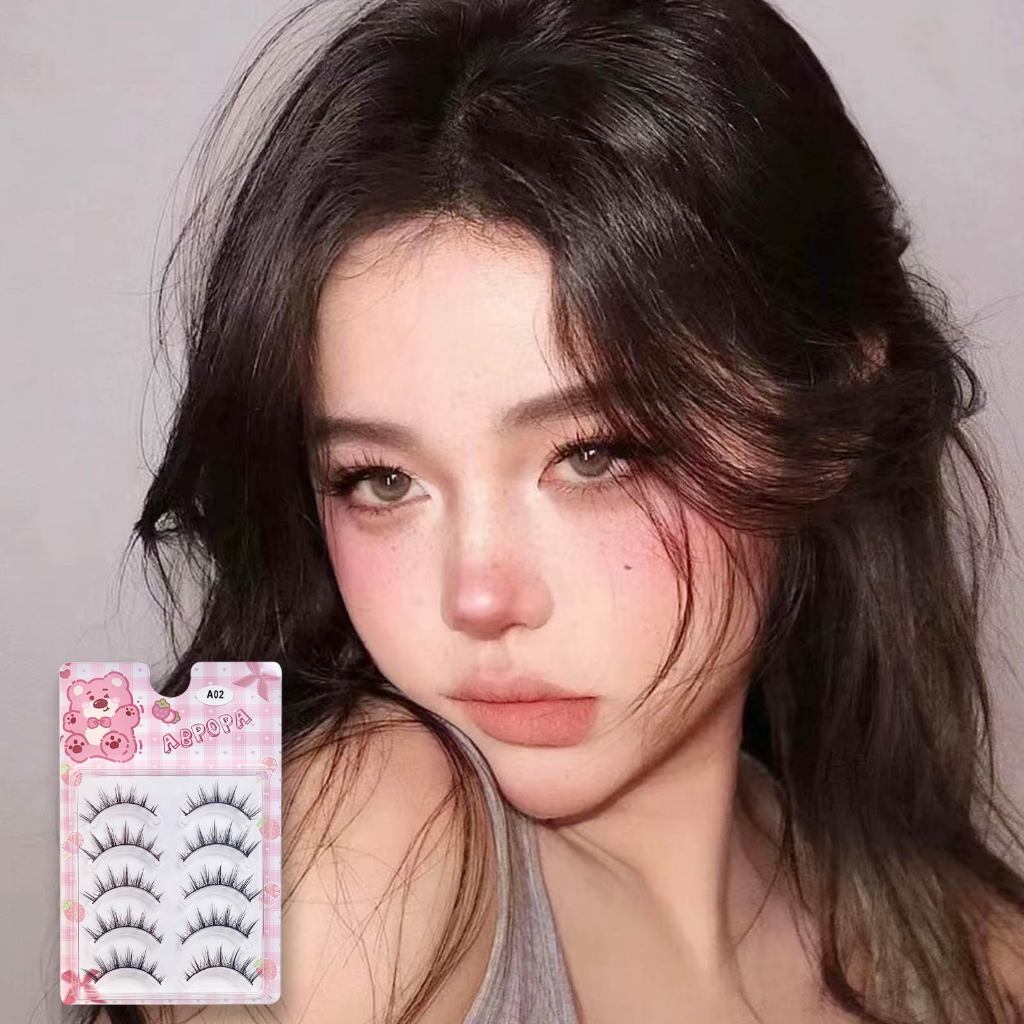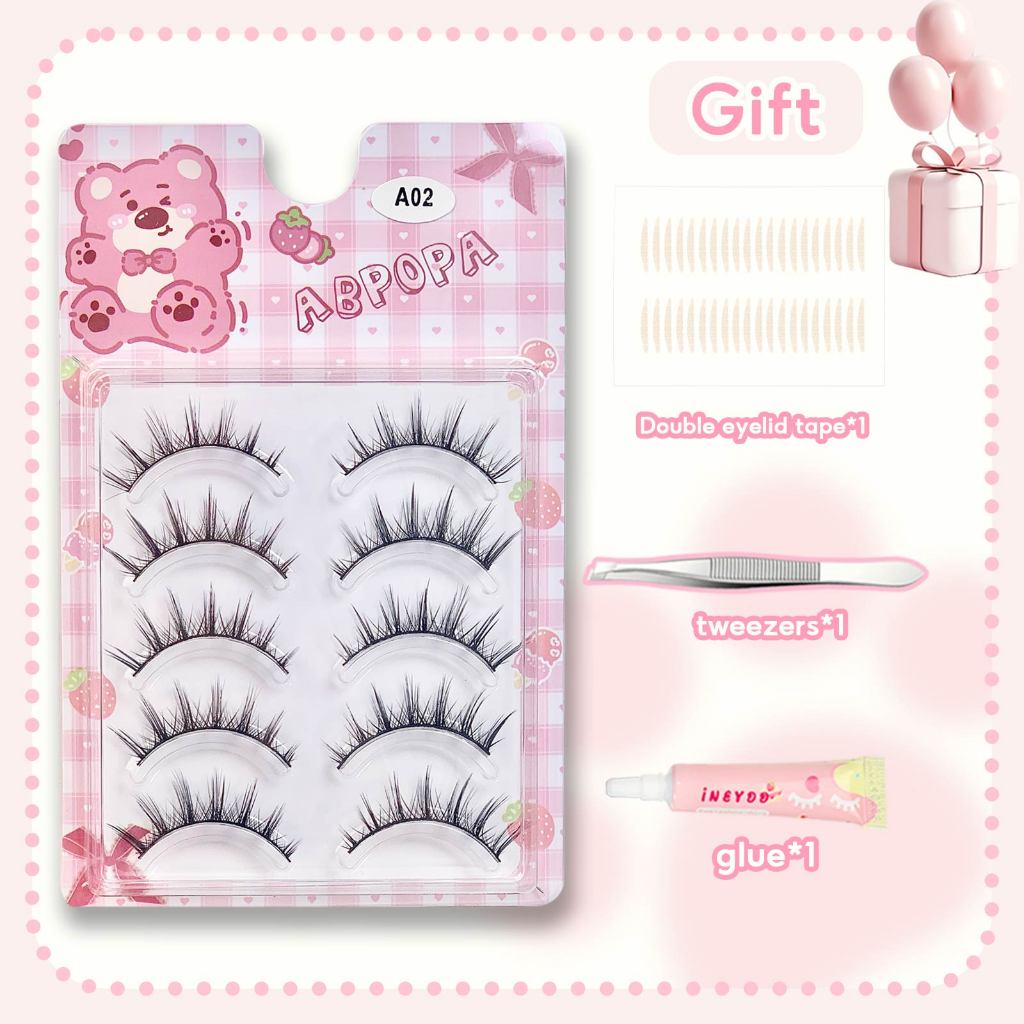 Abpopa A02 การ์ตูน Fairy Curly ขนตาปลอม (ของขวัญฟรี : กาว+แหนบ+เทปตาสองชั้น) รากอ่อน Clear Cross Slender คุณภาพสูง 5 คู่