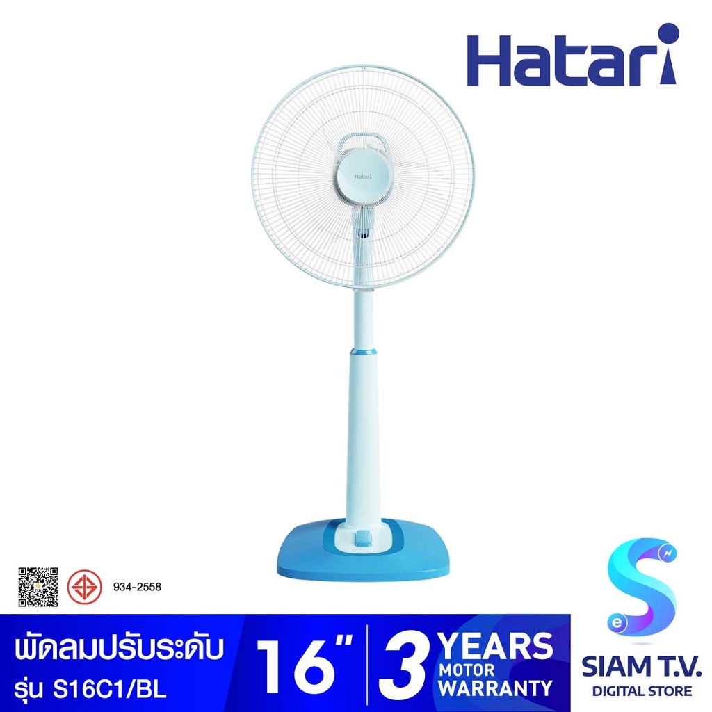 ็HATARI พัดลมปรับระดับ 16 นิ้ว สีฟ้า รุ่น S16C1 โดย สยามทีวี by Siam T.V.