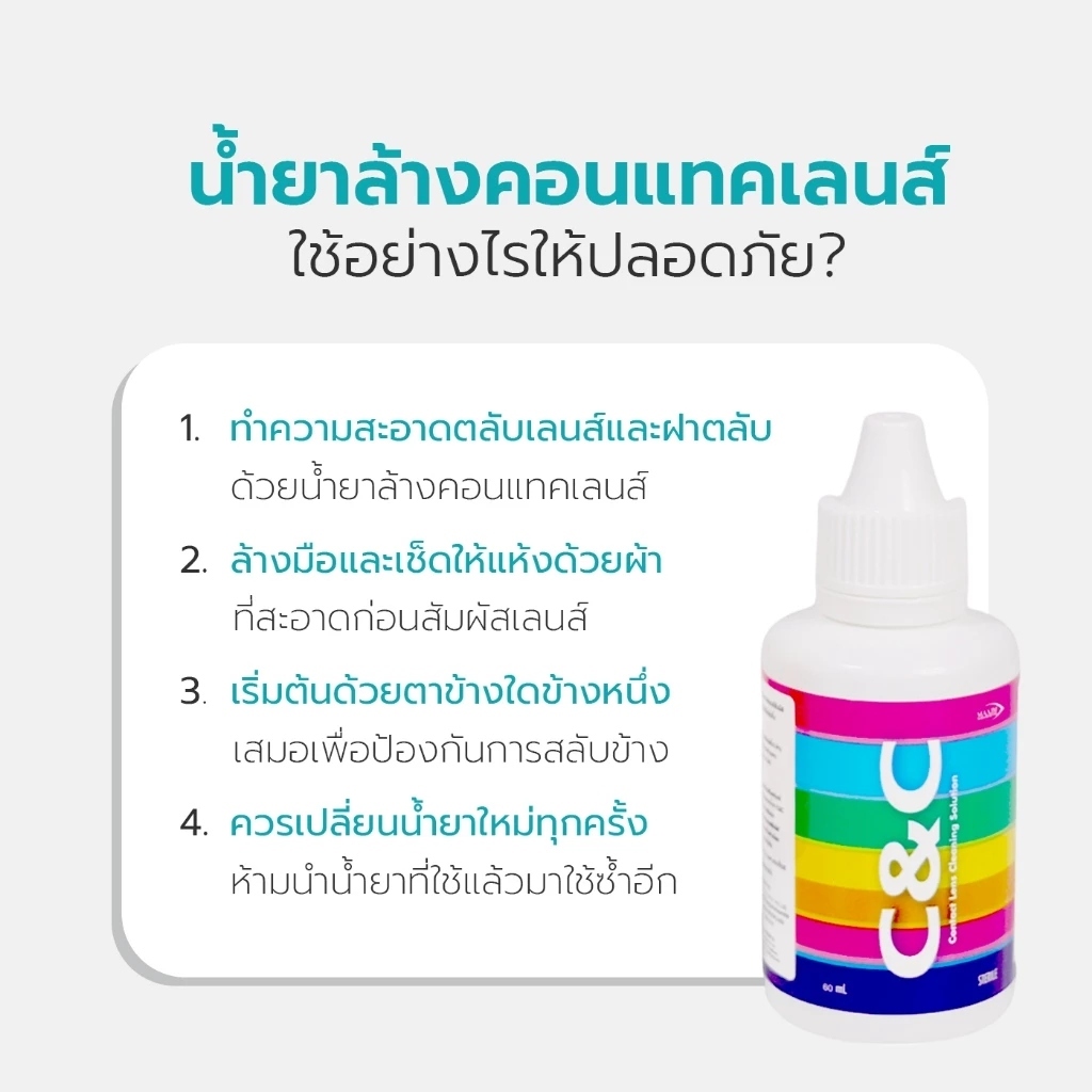 (1 กล่อง) C&C Contact Lens Cleaning Solution ซีแอนด์ซี น้ำยาล้างคอนแทคเลนส์ (60 ml.)