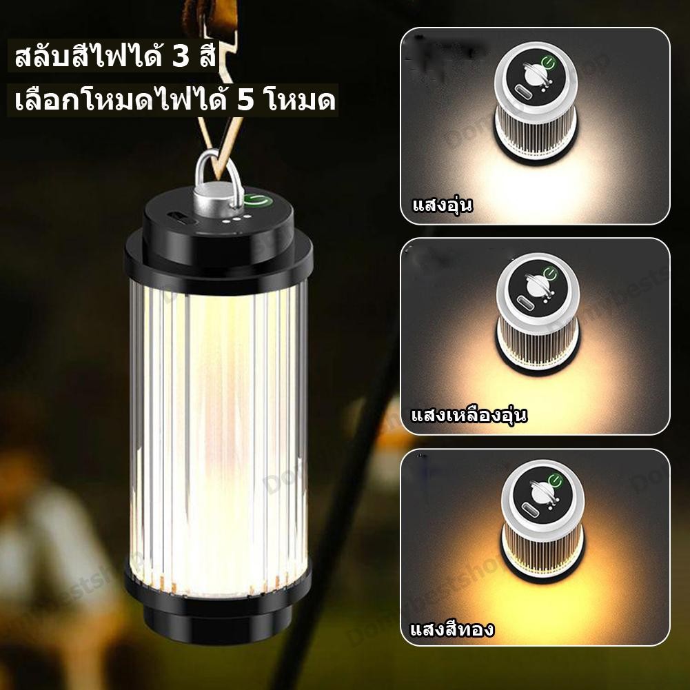 🚚 Led ไฟตั้งแคมป์แบบพกพา 5 โหมดไฟ 2000mAh Type C ชาร์จสําหรับฉุกเฉิน [Domybestshop.th]