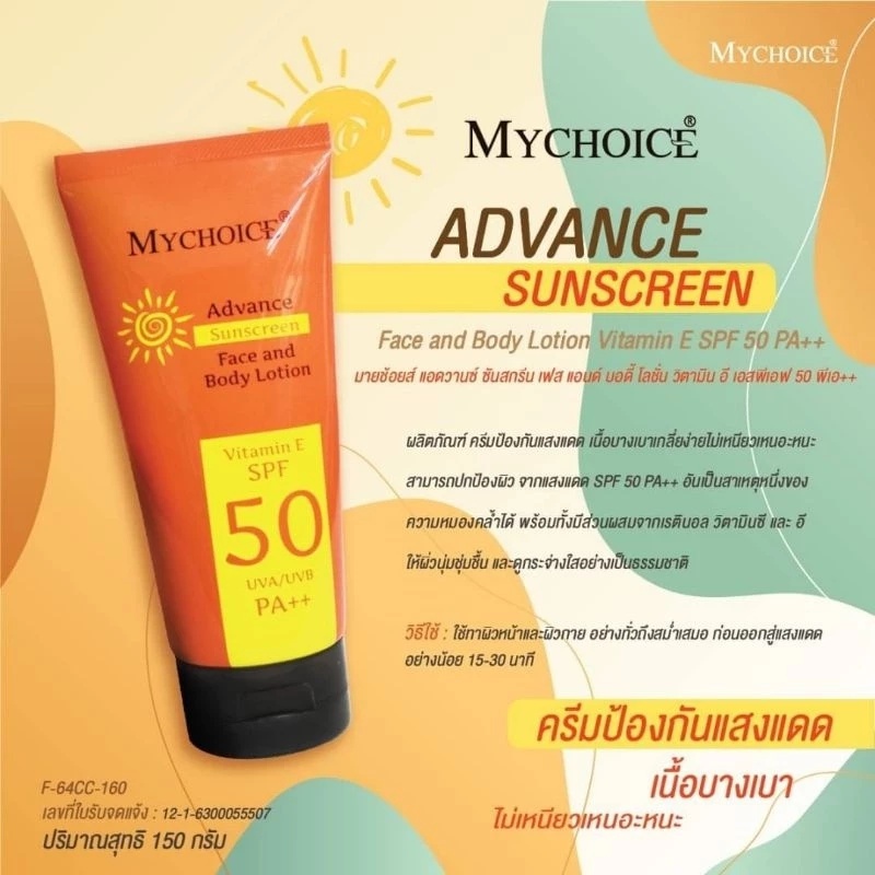 ครีมกันแดด MYCHOICE Advance Sun Block (150g) ครีมกันแดดมายช้อยส์ สำหรับผิวหน้าและผิวกาย