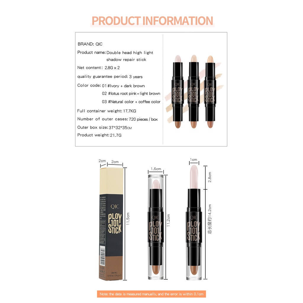 ไฮไลท์เตอร์ 3 สี & คอนทัวร์สติ๊ก แต่งหน้า เครื่องสําอาง สองหัว คอนซีลเลอร์ แท่ง ไหปลาร้า เงา ปากกา YUE