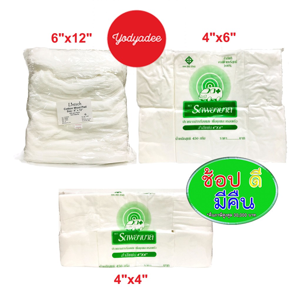 COTTON SHEET NON STERILE 450GM สำลีแผ่น ไม่เสตอร์ไลน์ AMBULANCE รถพยาบาล 4"x4" 4"x6" LINTECH 6"X12"