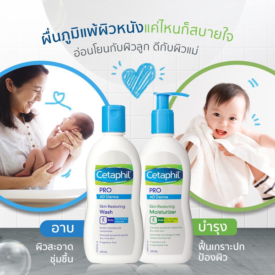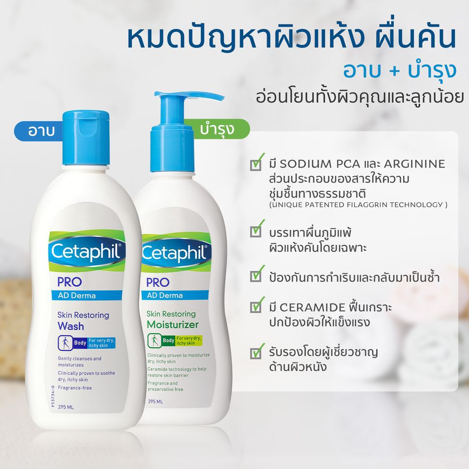 Cetaphil PRO AD Derma เซตาฟิล โปร แอด เดอร์มา ครบทั้งอาบ และบำรุง 295 มล. ลดอาการผื่นภูมิแพ้ผิวหนัง ผิวแห้ง คัน