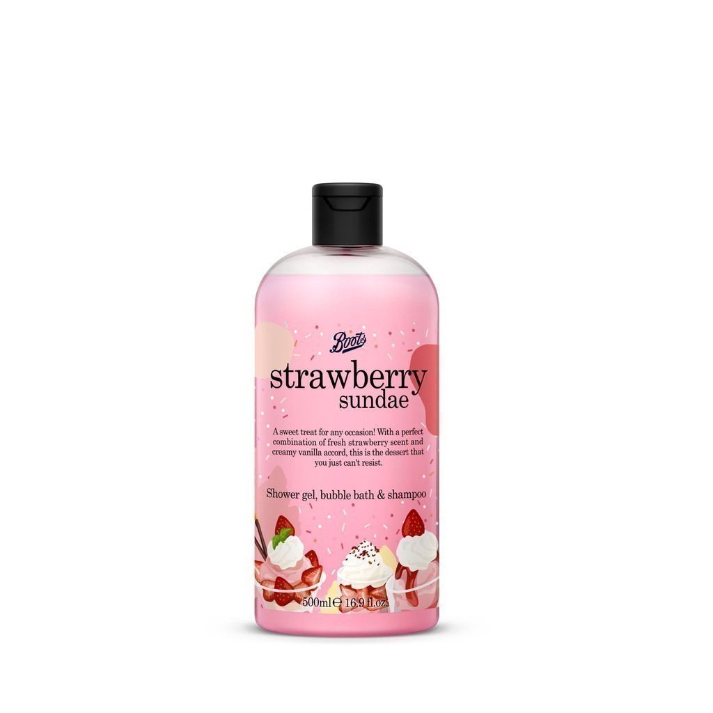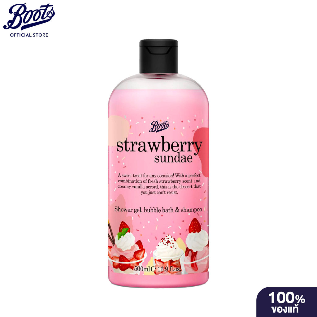 Boots Flavour Strawberry Sundae Shower Gel Bubble Bath & Shampoo 500Ml บู๊ทส์ เฟเวอร์ เจล, บับเบิ้ล บาธ แอนด์ แชมพู